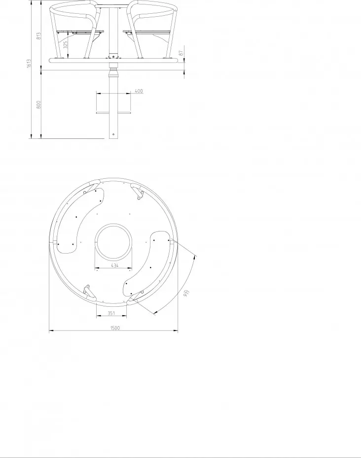 - Het centrale handwiel laat de kinderen toe om al zittend de draaimolen zelf te laten draaien