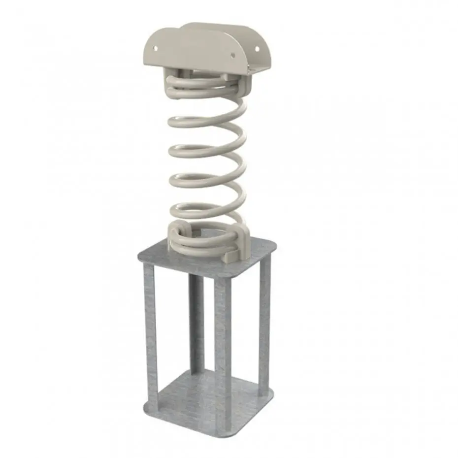 - De voetplaat van de veerwip dient op een stevige ondergrond bevestigd te worden.