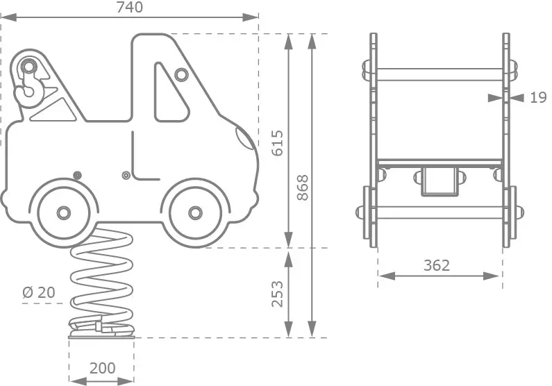 Wipkip Takelwagen is een echte aanvulling voor in speeltuinen en andere professionele speelparken. Met de wipkip wordt er nog meer speelplezier beleefd! De wip is een stevig en robuust speeltoestel. De veerwip is niet voorzien van een rugleuning. De rugleuning is optioneel mee te bestellen.