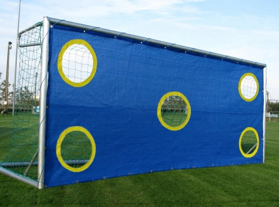 Gaasnet in gebreid UV-gestabiliseerd polyethyleen. Op te hangen in de doelopening, om gericht de traptechniek te oefenen. Rondom gezoomd met messing ringen elke 50 cm en voorzien van 5 openingen met een doorsnede van 50 cm, met duidelijk zichtbare gele rand. Inclusief 20 m bevestigingskoord.