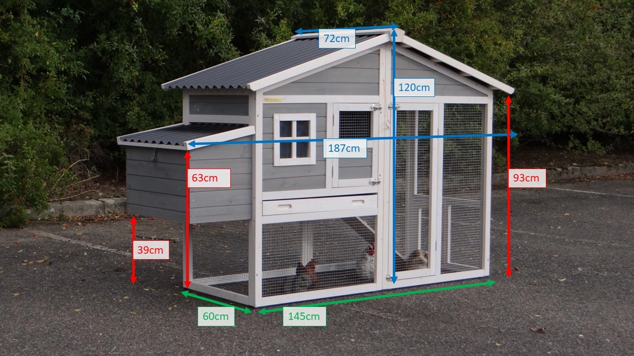 | Buitenwerkse afmetingen incl. dak en nestkast (BxDxH) | 187x72x120cm |