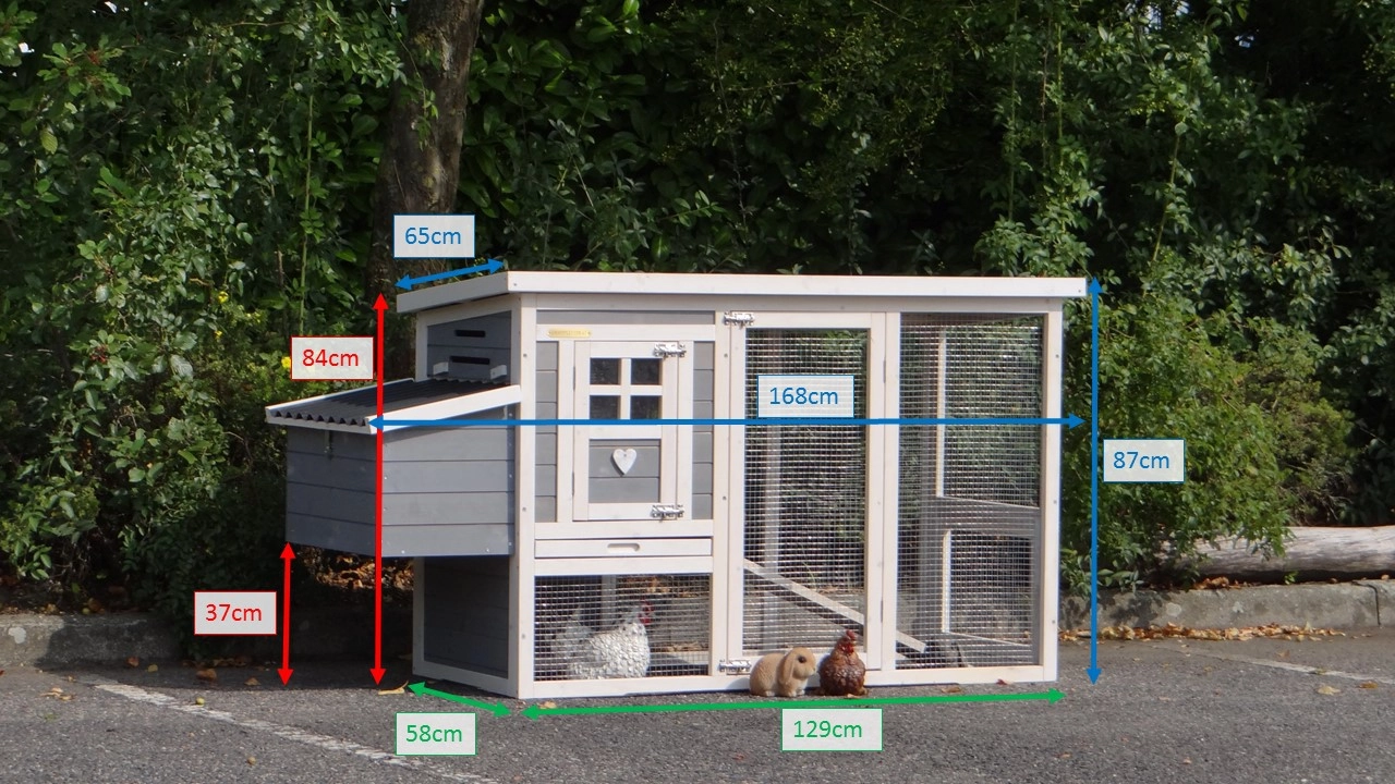 | Buitenwerkse afmetingen incl. dak en nestkast (BxDxH) | 168x65x87cm |