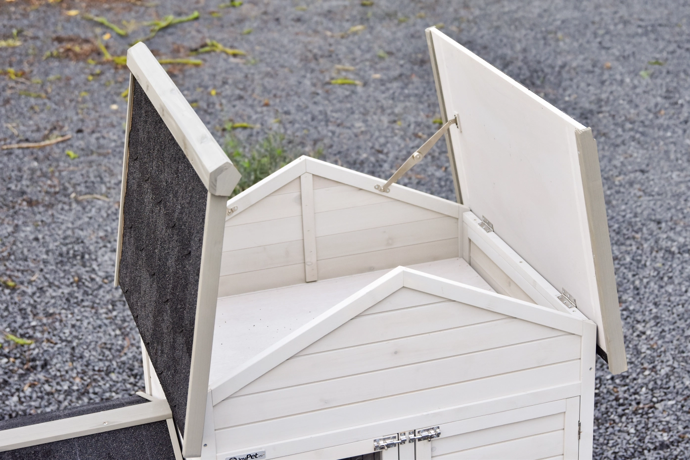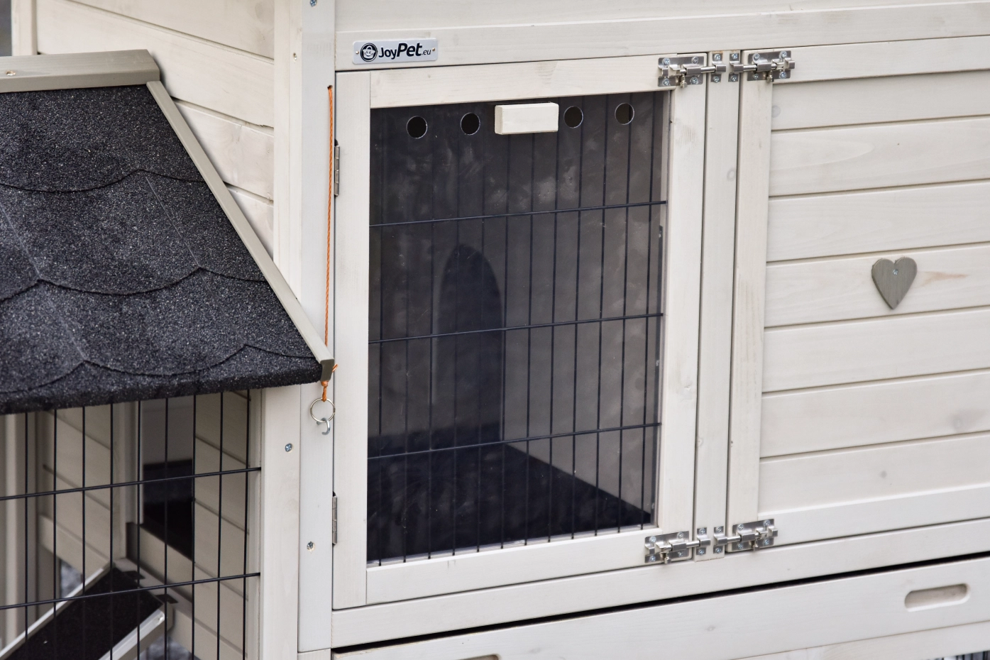 - Het hok heeft een dak met dakleer