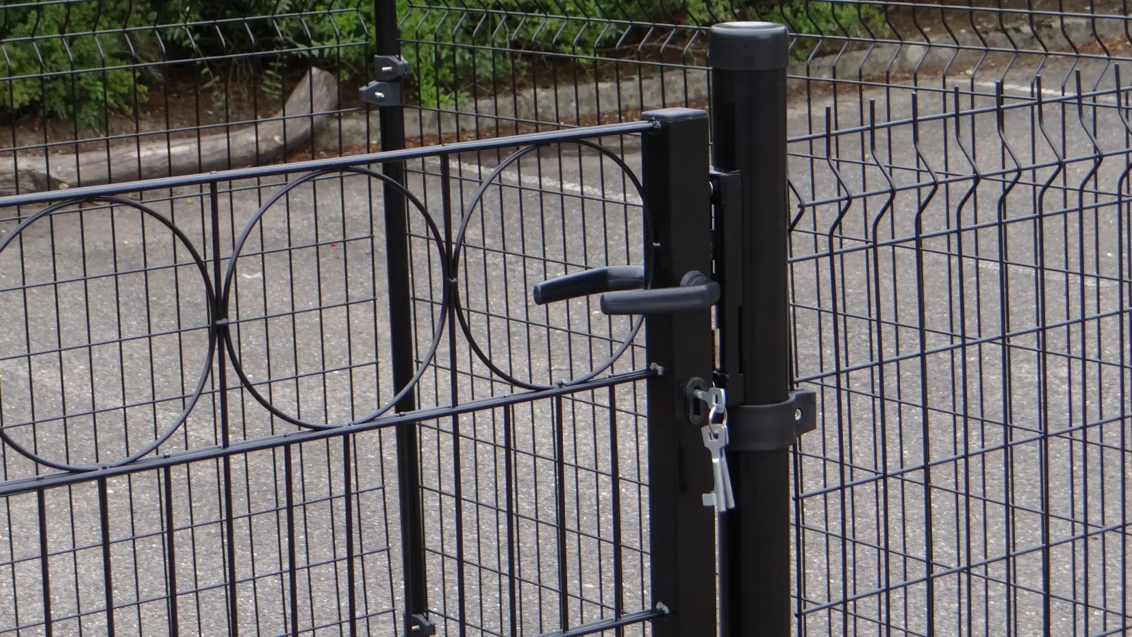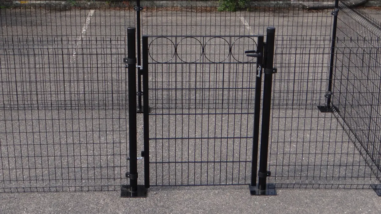 Gaaspoort als toegang tot afrastering of omheining. Inclusief buitenframe is het ±107 cm breed, en 125 cm hoog. De vrije doorgang is ± 90cm. Solide poortje met slot en deurkrukken.