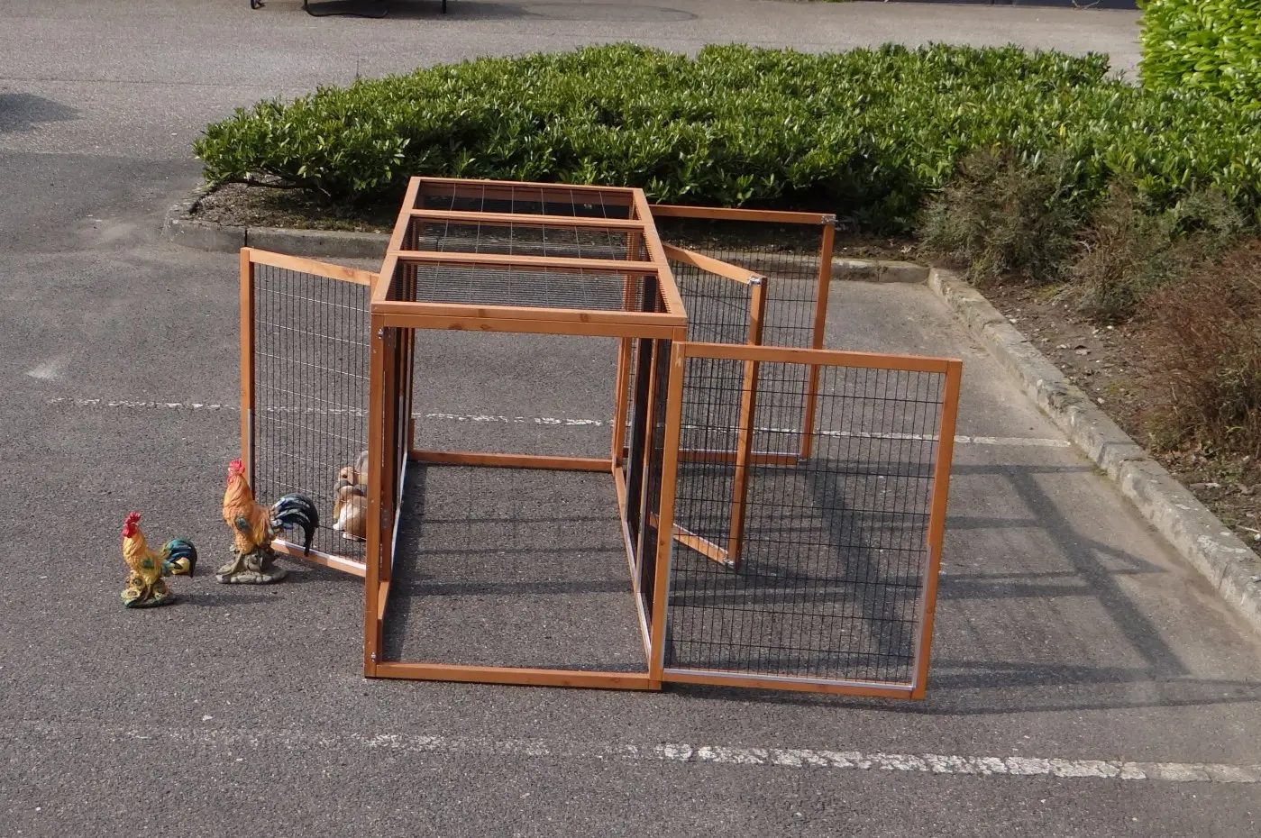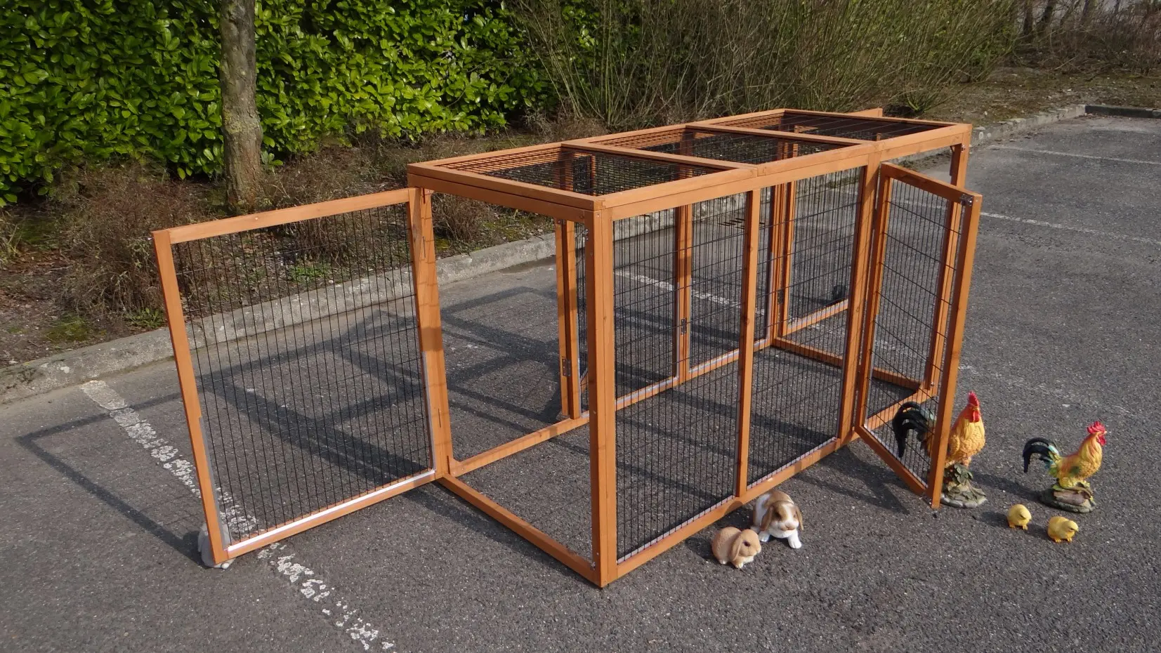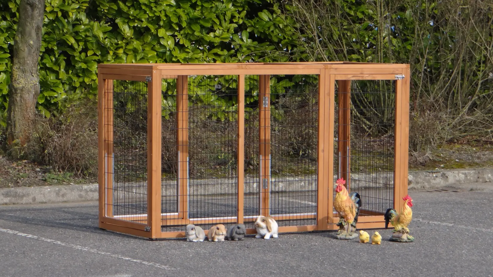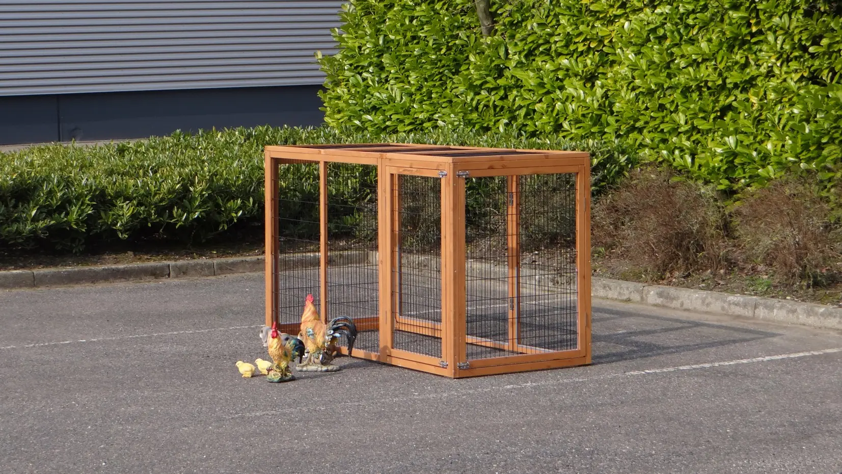 De veelzijdige dierenren Functional kan eenvoudig worden gekoppeld aan uw bestaande konijnenhok of kippenhok, of los worden geplaatst, bijvoorbeeld als kattenren. Deze multifunctionele ren heeft 4 deuren: aan alle zijden 1. U kunt deze ren ook moeiteloos combineren met meerdere exemplaren. De kattenren Functional is eenmaal gebeitst. Beits voor deze kattenren is optioneel beschikbaar. De ren is voorzien van een gaasdak.