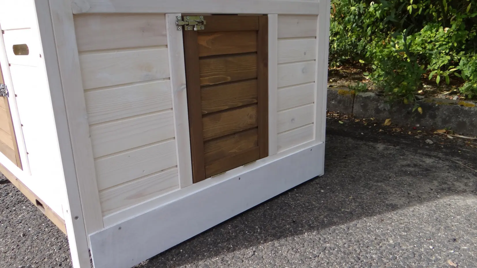 - Wanneer het hok niet op een beschutte plaats staat, dan adviseren wij om het te verankeren