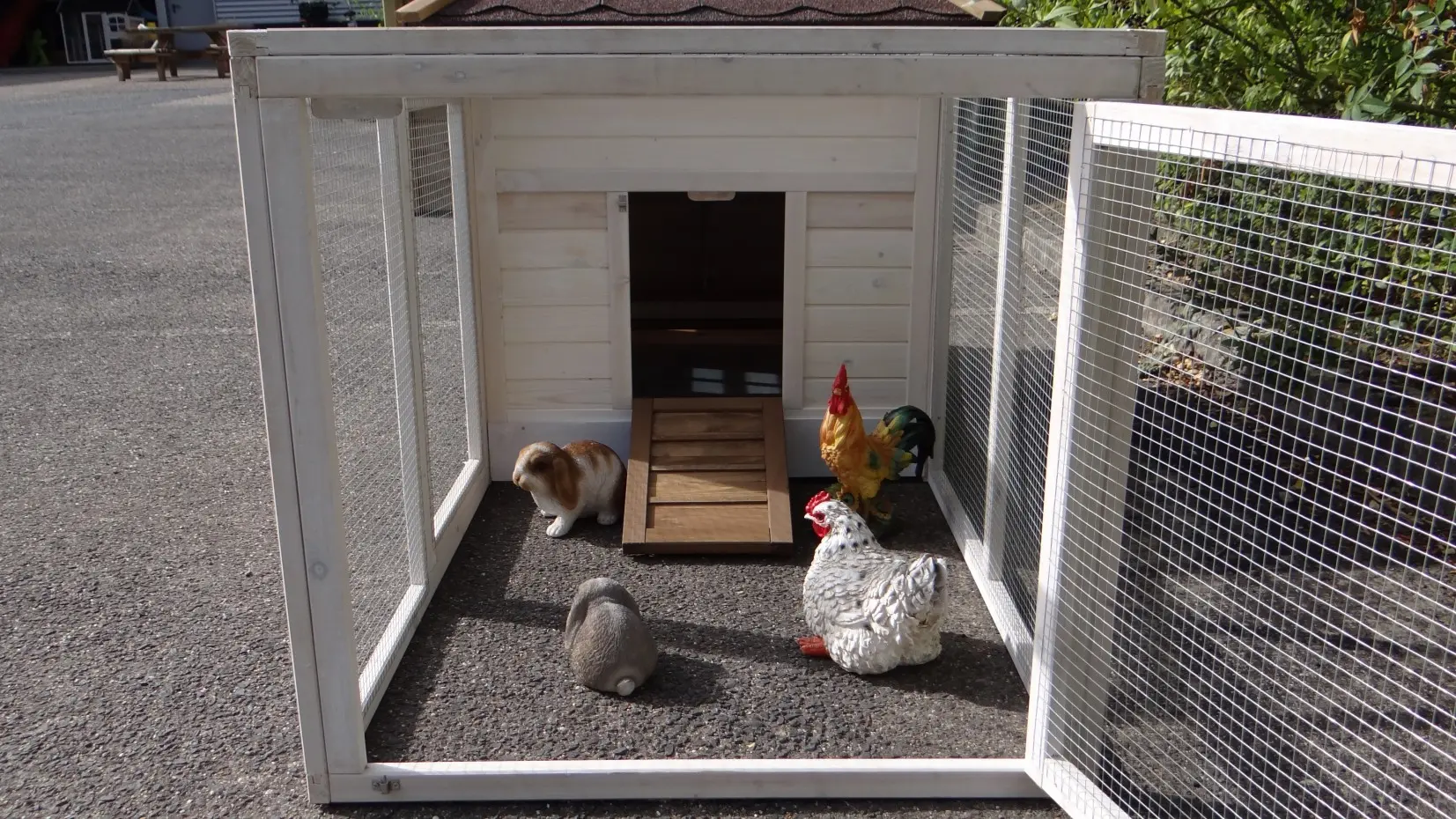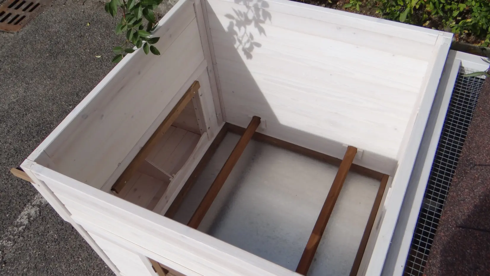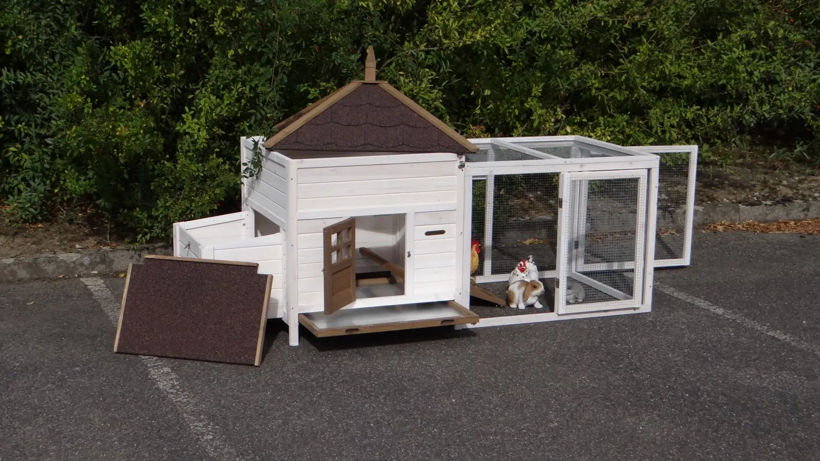 - Het hok is voorzien van een afneembaar dak
