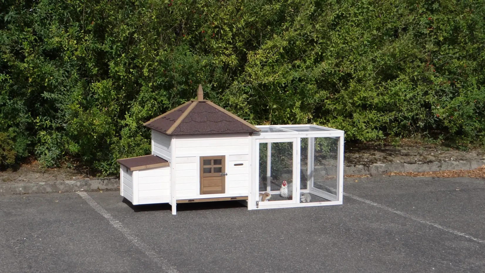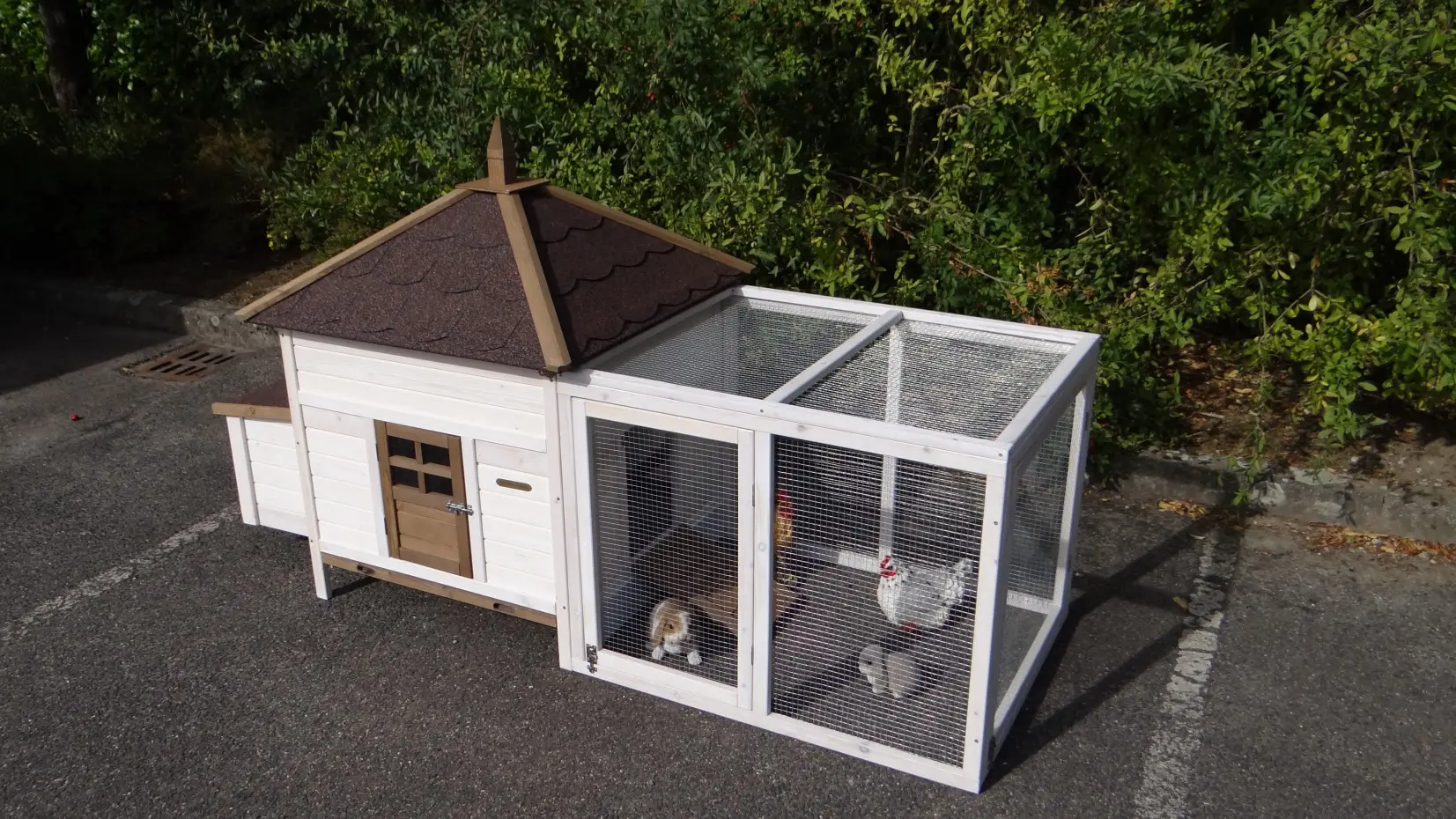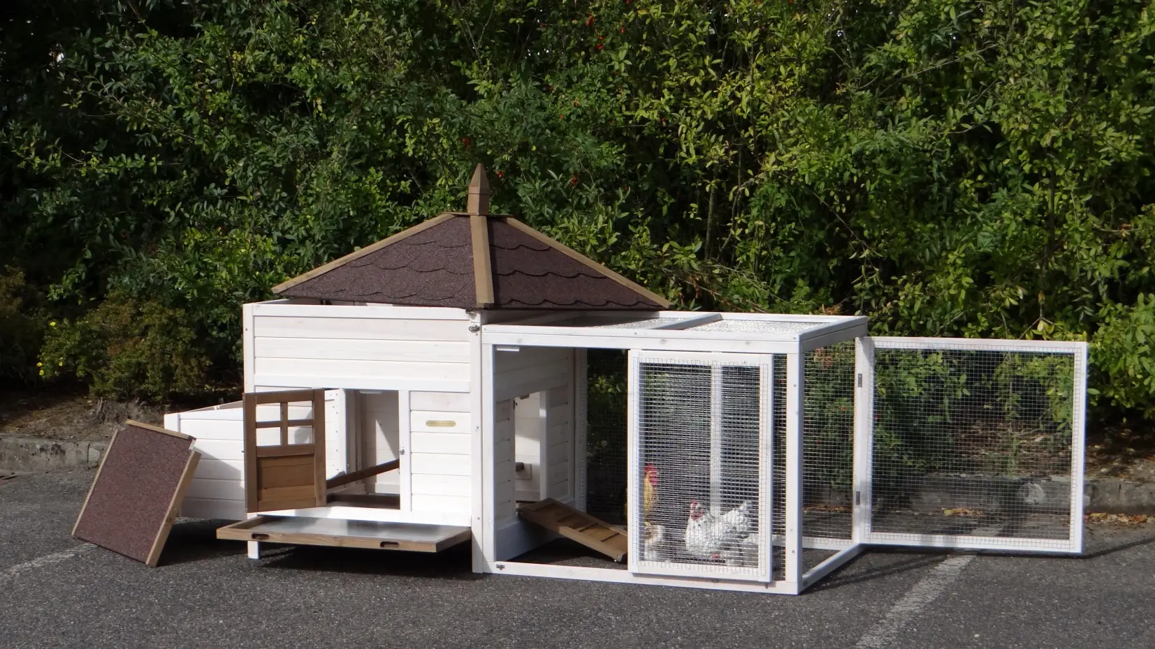 - Het hok is voorzien van een afneembaar dak