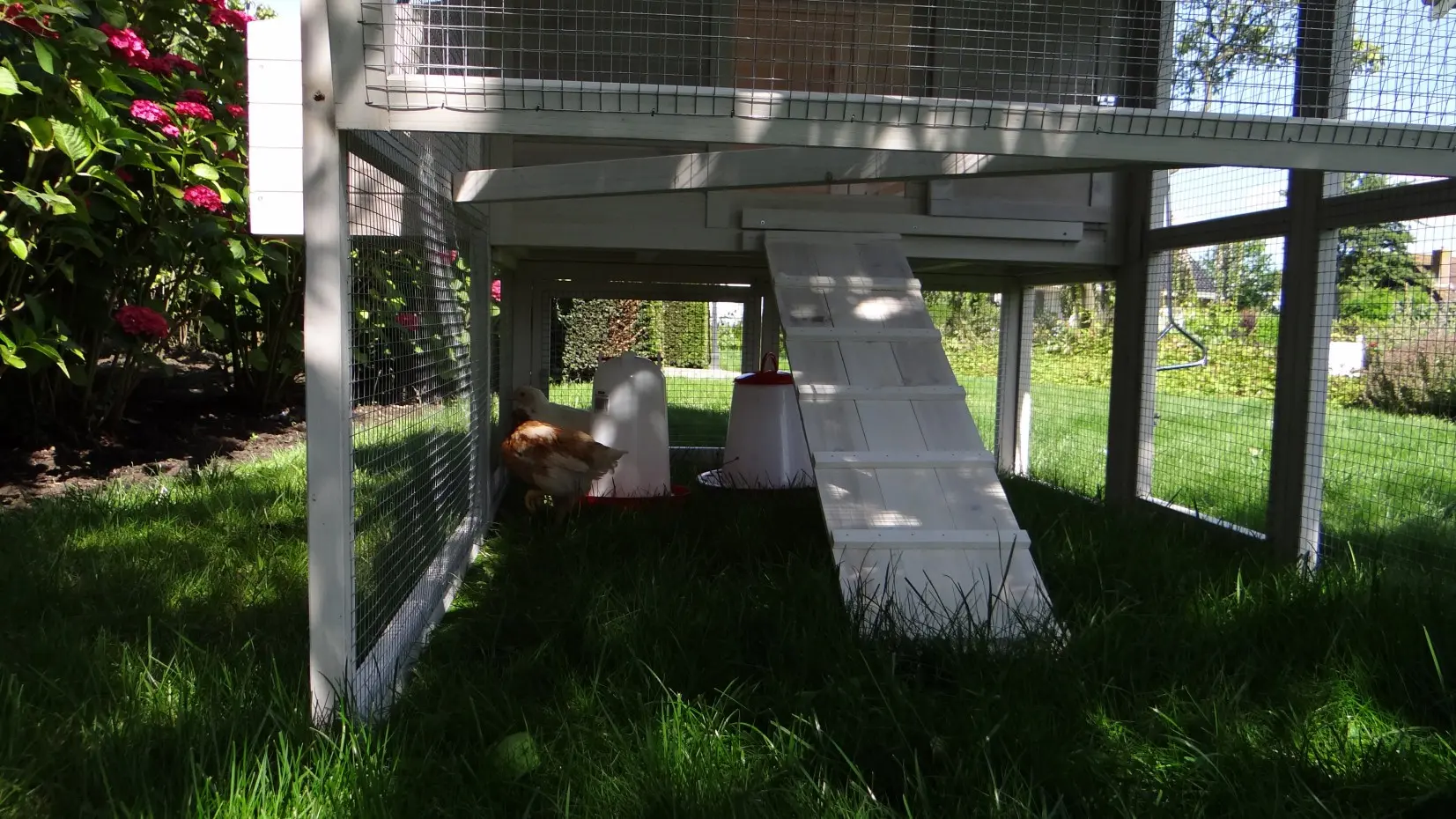 - Wanneer het hok niet op een beschutte plaats staat, dan adviseren wij om het te verankeren