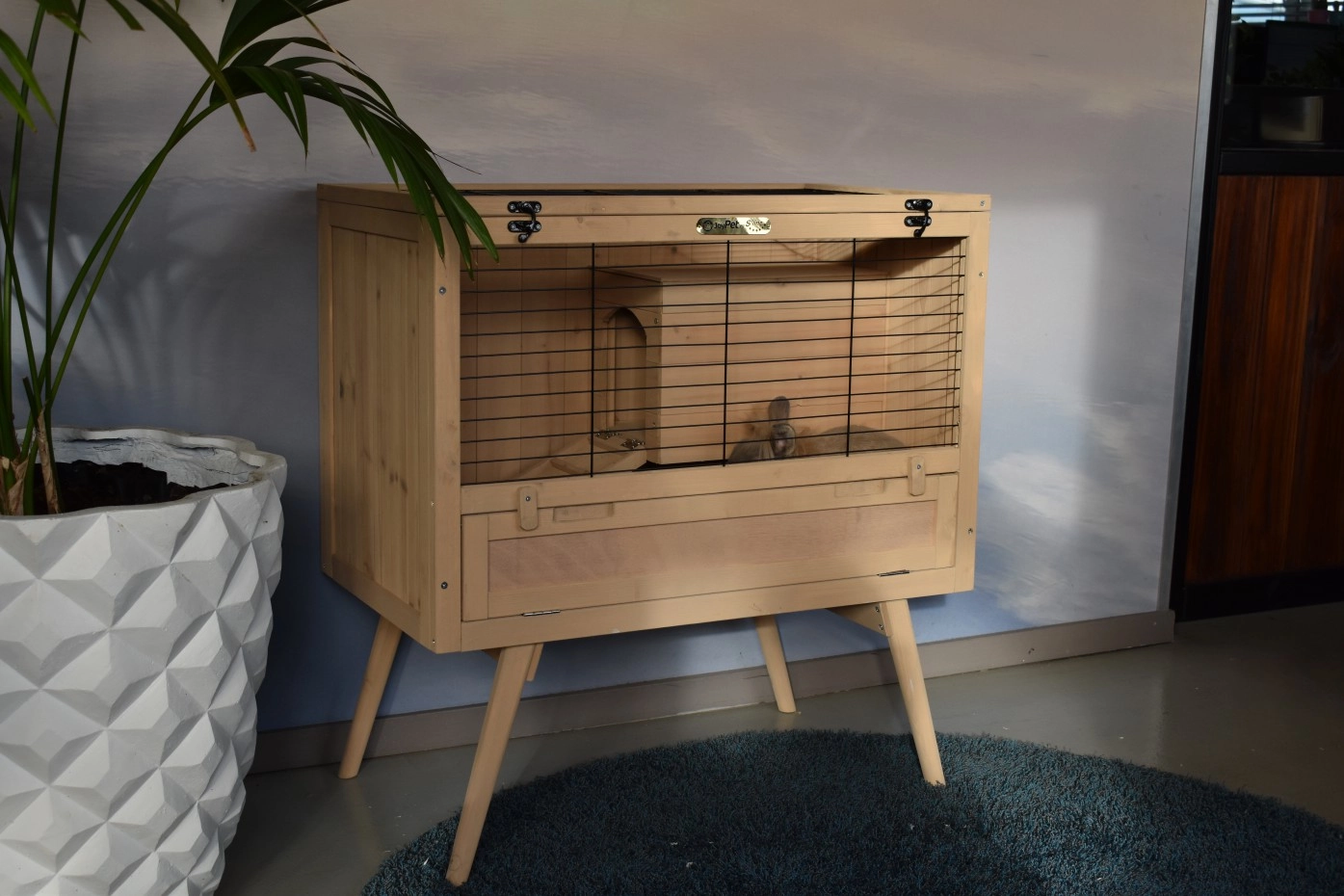 Caviahok & Konijnenkooi Emma is een mooi, retro dierenhok, geschikt voor binnen. Konijnen- en caviahok Emma is voorzien van een nachthokje wat afgesloten kan worden. Een leuk binnenhok voor een klein konijntje of een cavia.