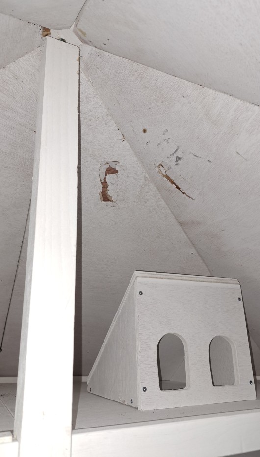 - Het dak van de volière is afgewerkt met dakleer met leislag