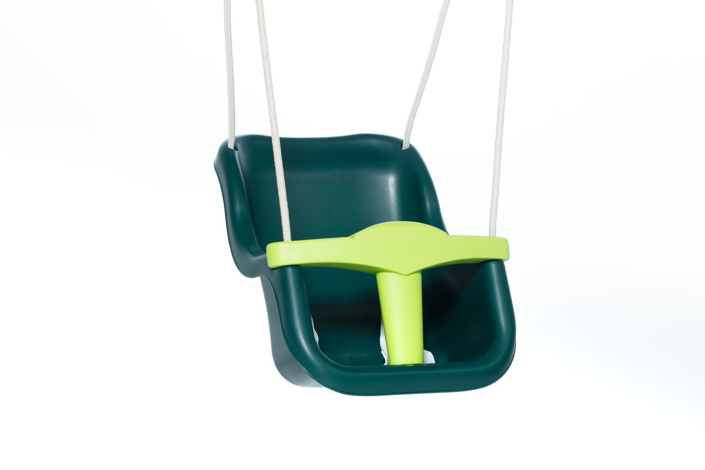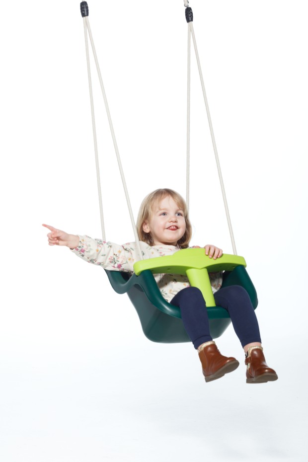 De luxe babyschommel in donkergroen met limoengroen T-stuk is een echte blikvanger en straalt rust uit. Dankzij de extra hoge rugleuning worden hoofd en nek van uw kindje optimaal ondersteund. Het babyschommelzitje is voorzien van een T-stuk en een veiligheidsriempje voor extra veiligheid. Het speciale BR-touw brandt niet aan de kinderhandjes en is daardoor extra comfortabel en veilig in gebruik.