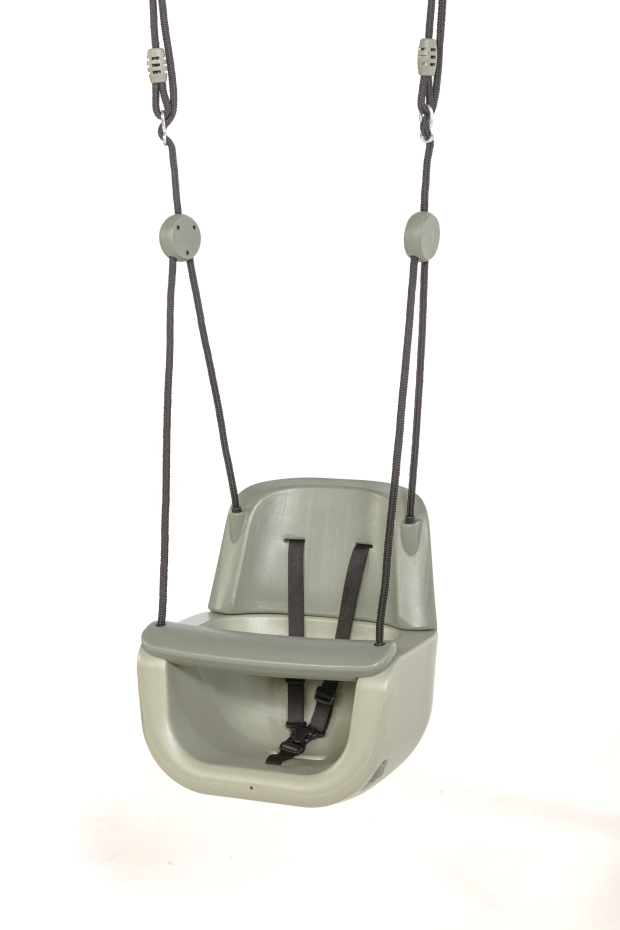 Dit frisse babyschommelzitje in pastelgroen is dé favoriet van elke kleine avonturier. Het slimme 3-in-1 ontwerp groeit moeiteloos mee met je kind, van de eerste wiebel tot het stoere schommelen. De drie schommelmodules bieden comfort en veelzijdigheid voor iedere fase. Met een stevige 3-punts gordel en duurzame HDPE constructie blijft dit babyzitje stabiel en veilig. Het zwarte gevlochten touw van 10mm dikte is verstelbaar en geschikt voor schommels tot 250cm hoog. Afmeting 39,5x32,5x45,5cm. Voor eindeloos baby schommelplezier in stijl!