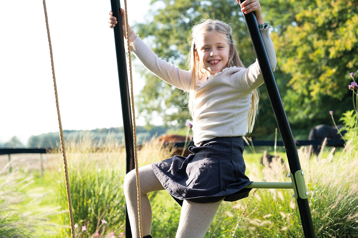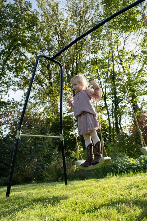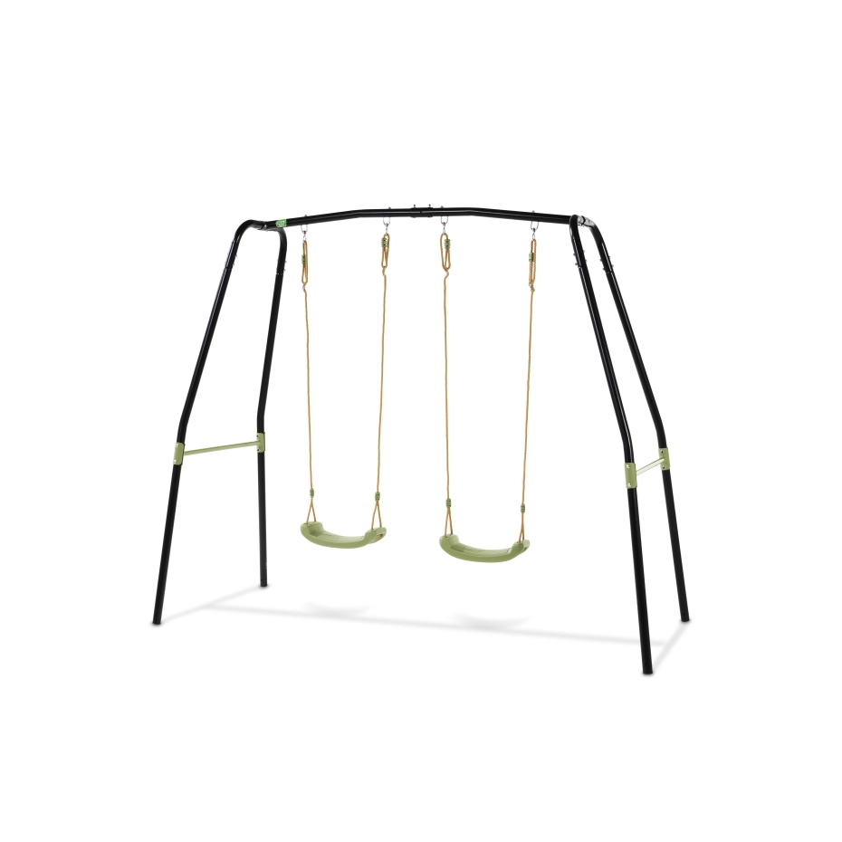 De EXIT Ivy dubbele schommel is het perfecte speeltoestel voor buiten! Deze EXIT Ivy dubbele schommel wordt geleverd met twee verstelbare schommelzitjes en een duikelrek aan beide zijden. Het stevige, gegalvaniseerde frame is weerbestendig en biedt optimale stabiliteit. Bovendien is de EXIT Ivy dubbele schommel 100% repareerbaar en recyclebaar, waardoor hij jarenlang speelplezier garandeert!