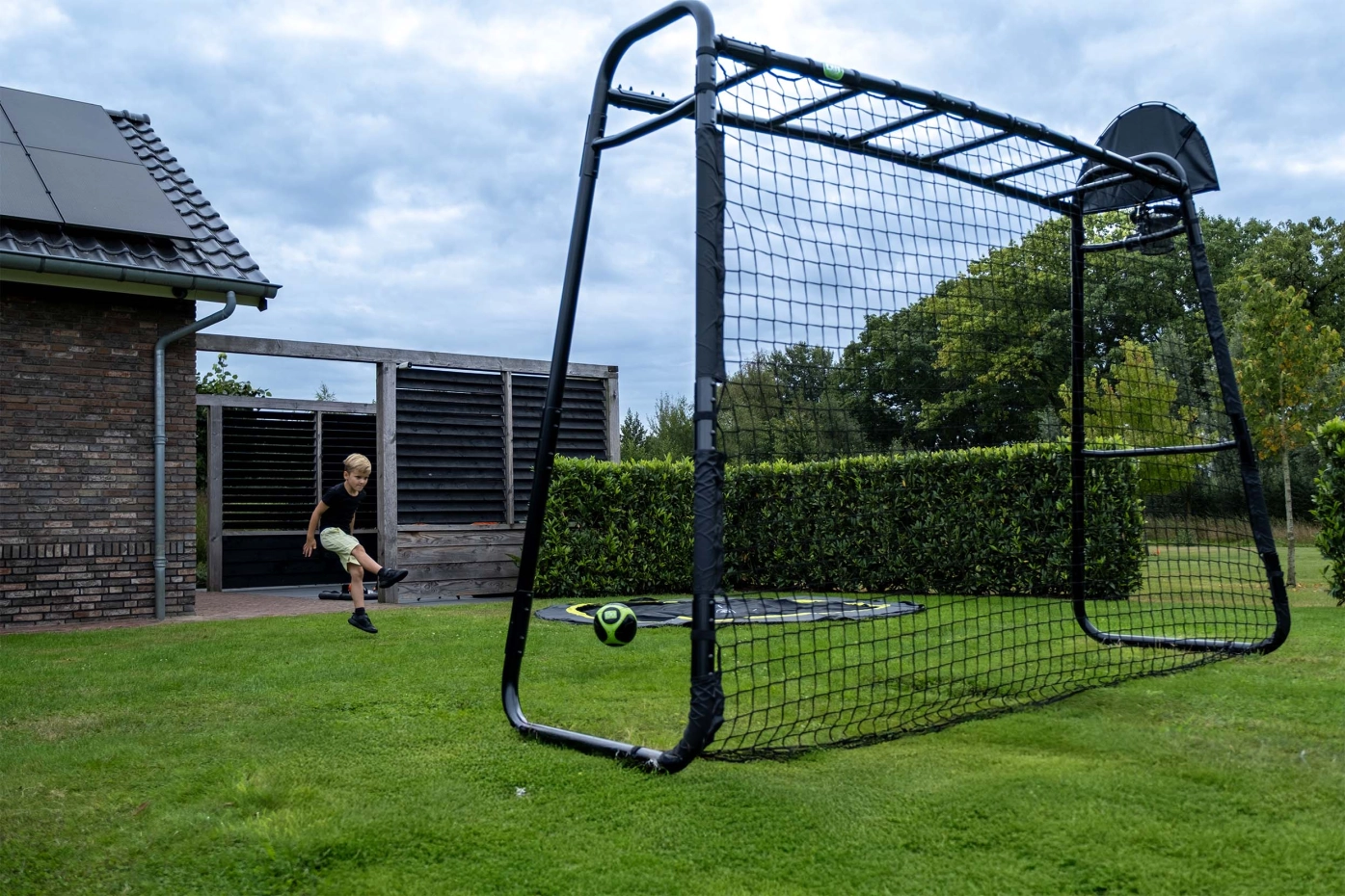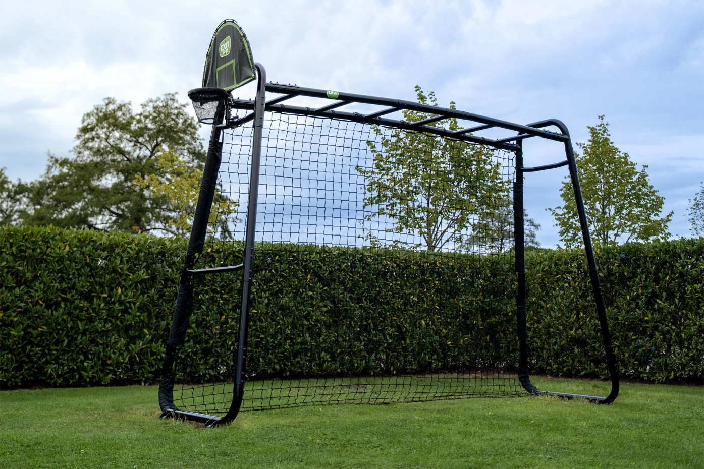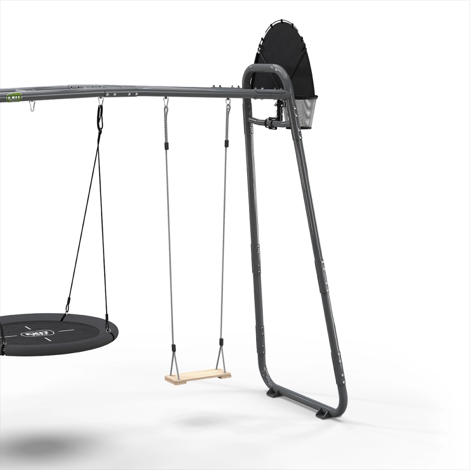 De EXIT GetSet MB205 is een veelzijdig sport- en speeltoestel dat bewegen en samenspelen stimuleert. Met monkeybar, voetbaldoel, basketbalring, duikelrek, houten schommel en nestschommel in één compact frame heb je een compleet speelstation in de tuin. De accessoires zijn eenvoudig te wisselen, waardoor het toestel steeds verrassend blijft. Gemaakt van weerbestendig staal en stevig verankerd voor stabiel en veilig speelplezier.