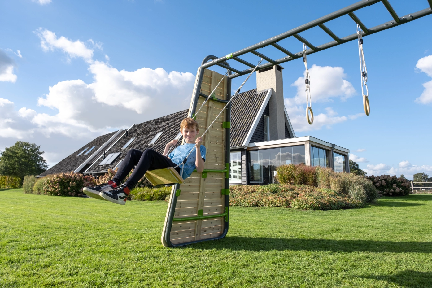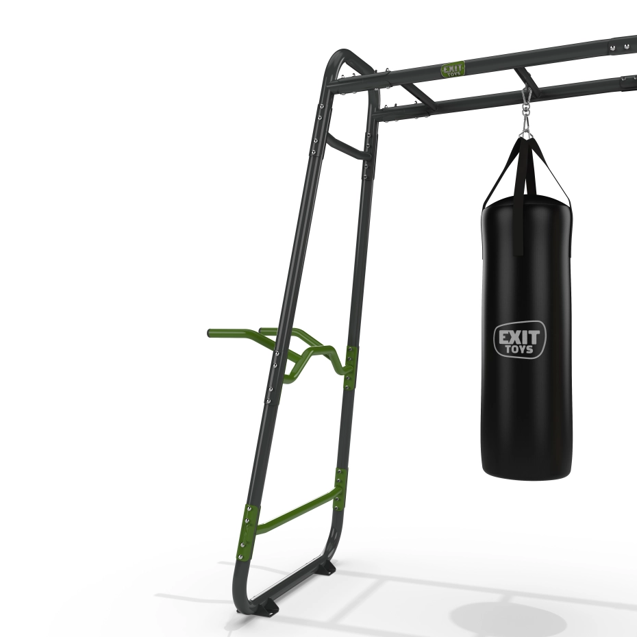 De EXIT GetSet MB320 is een speel- en fitnessrek van vier meter voor buiten met verschillende accessoires. Deze monkeybar is multifunctioneel en biedt plezier en uitdaging voor het hele gezin in eigen tuin. De accessoires zijn eenvoudig uit te wisselen.