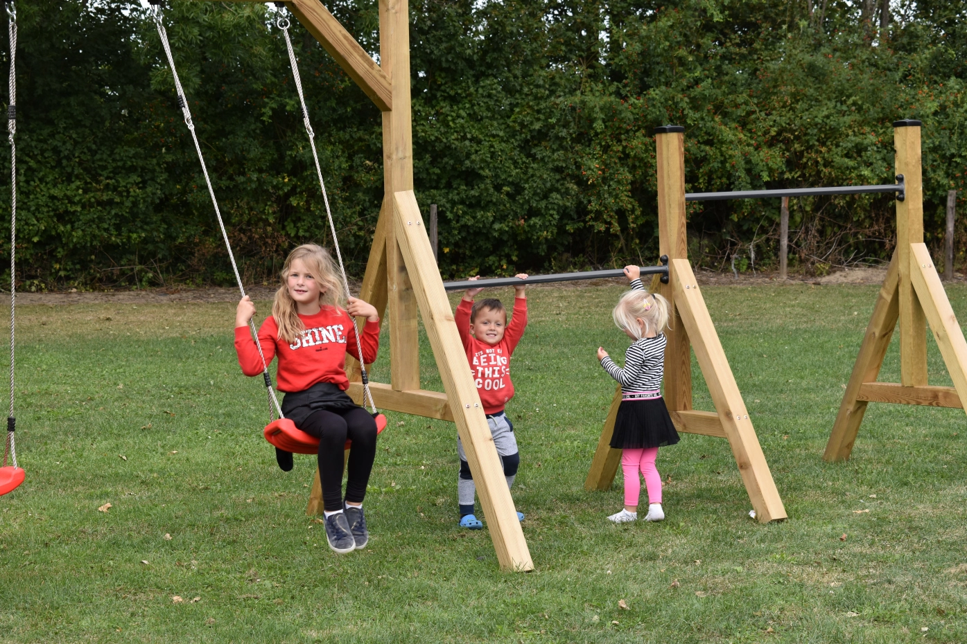 - De dubbele schommel heeft ruimte voor 2 schommelzitjes.