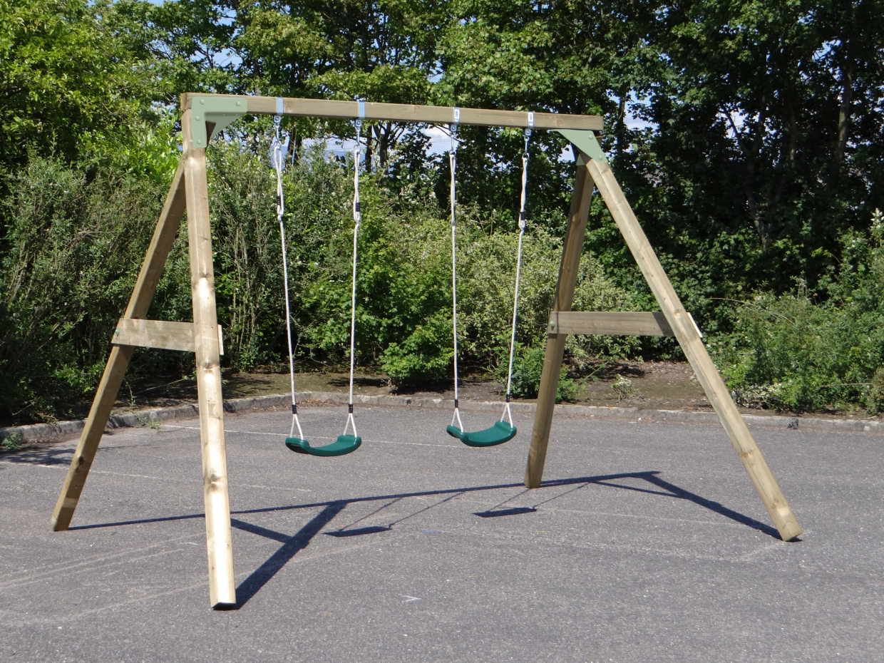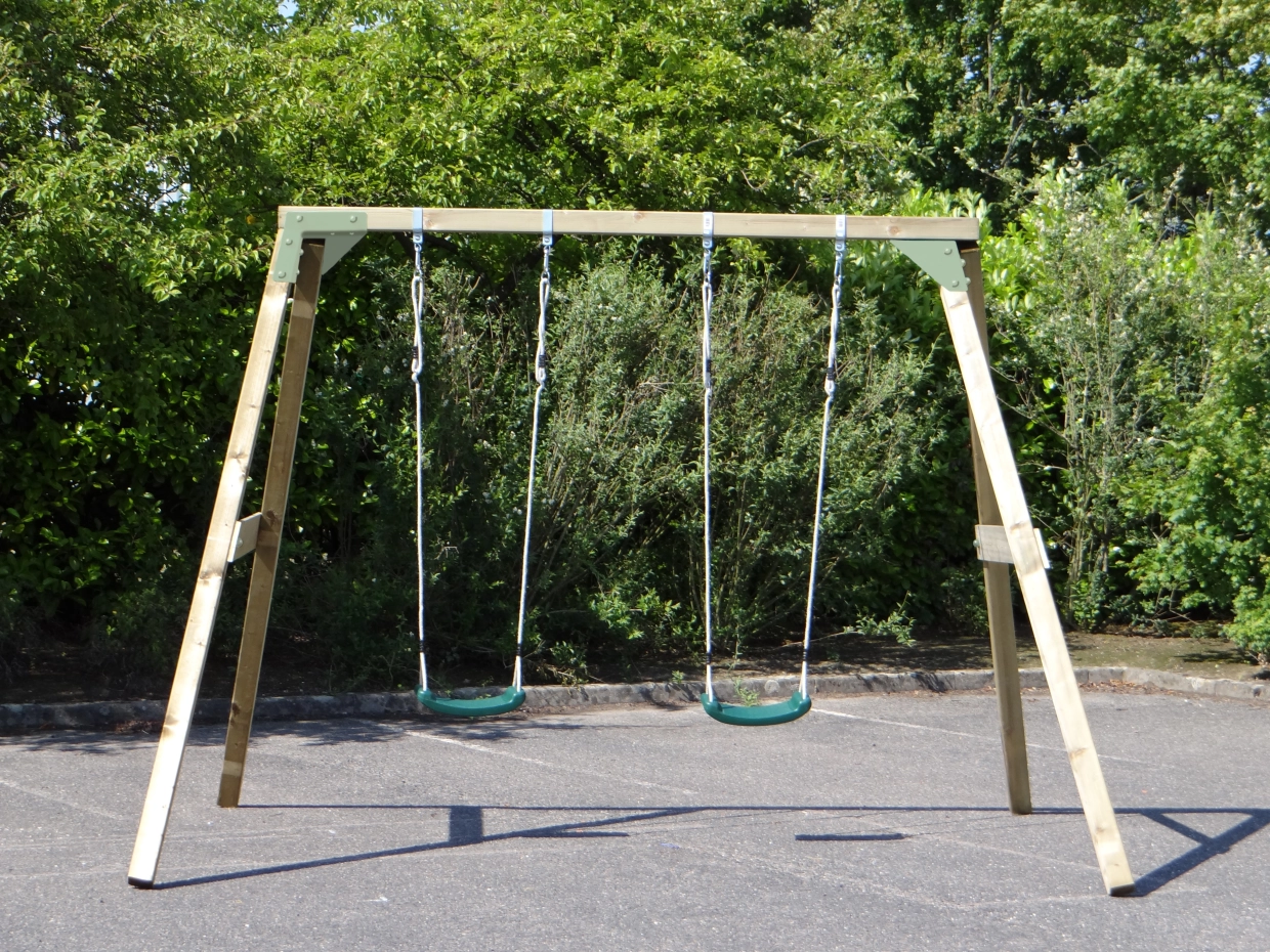 Schommel Subliem dubbel is een stevige houten schommel met pastelgroene stalen hoekstukken. Omdat de hoeken iets naar buiten staan krijgt de schommel extra stabiliteit. De schommel wordt geleverd met 2 kunststof zitjes en 4 grondankers. Maar u kunt er ook een babyschommel of nestschommel aan hangen.
