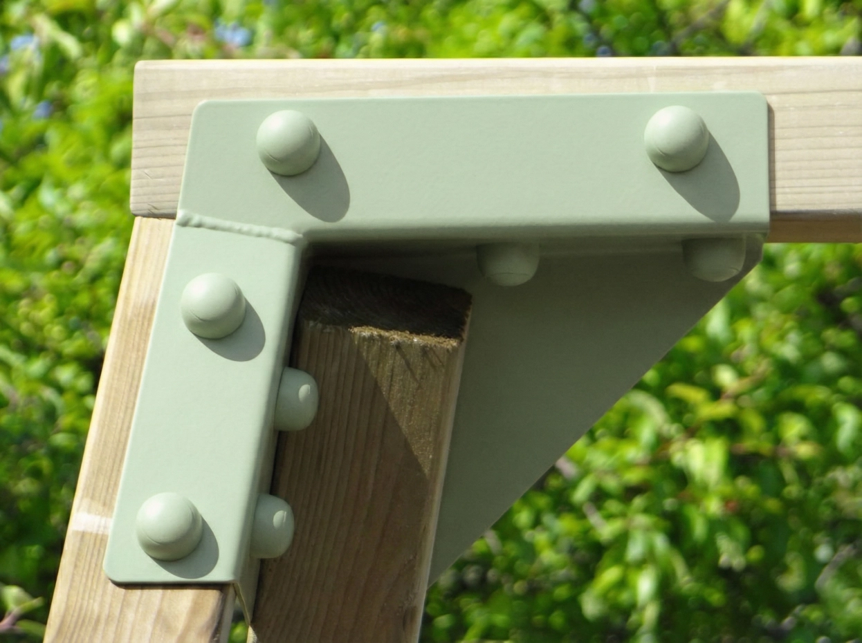- De hoek tussen poten en ligger is 100º, waardoor alle poten iets uit elkaar staan en de schommel uiterst stabiel wordt