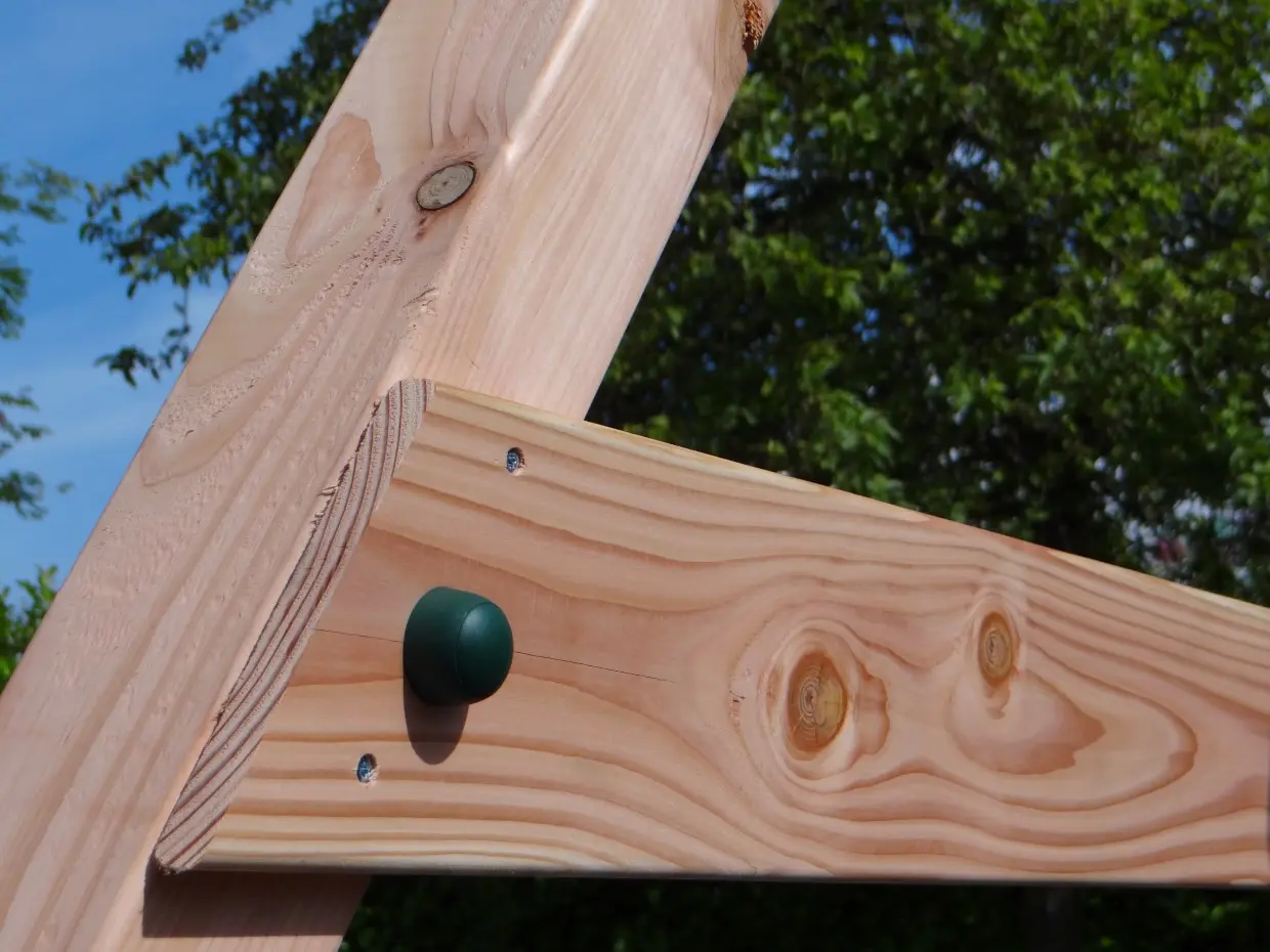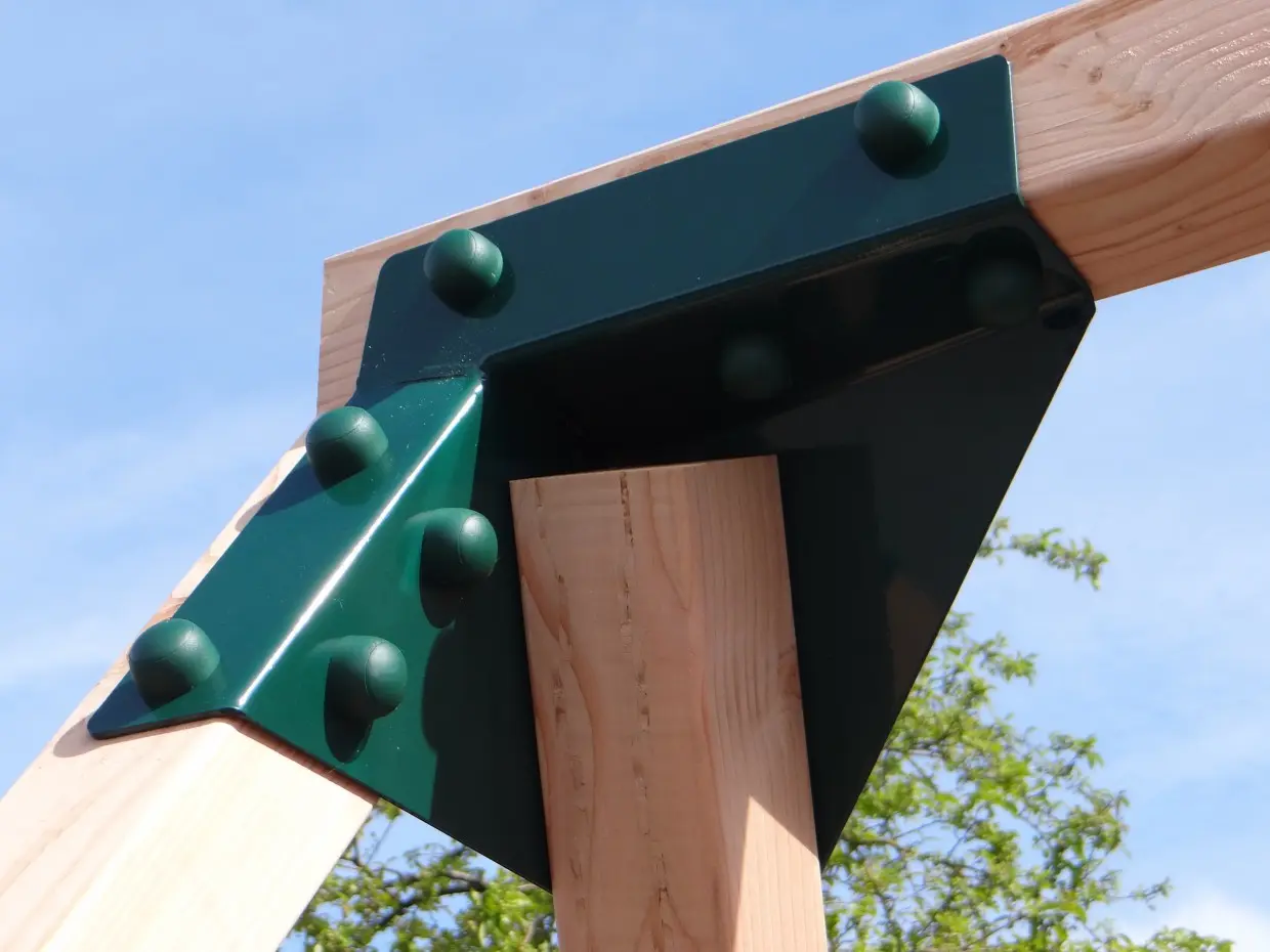Standaard wordt de schommel geleverd met donkergroene hoekstukken.