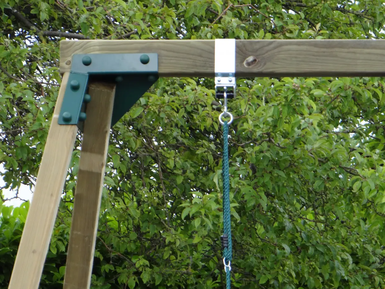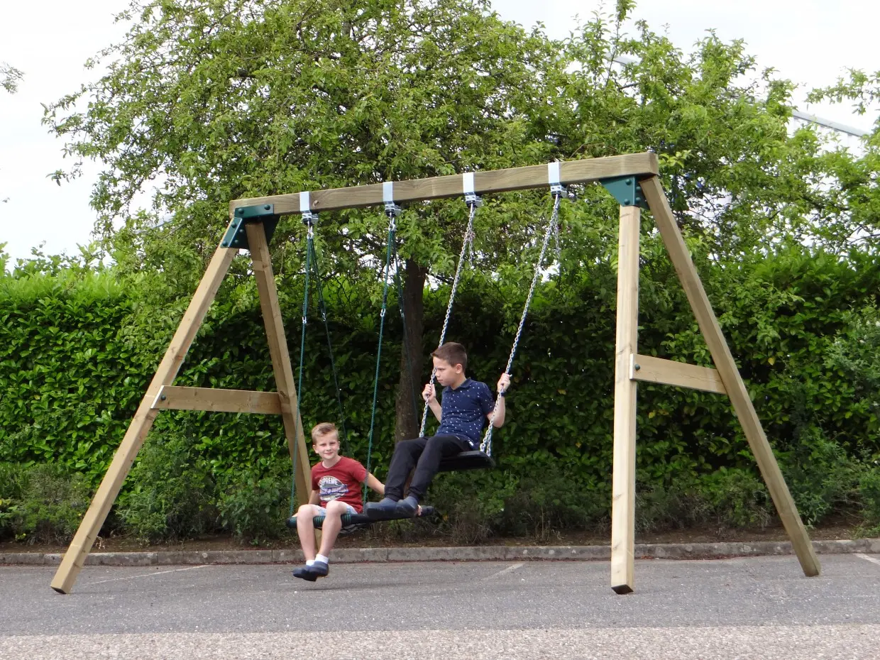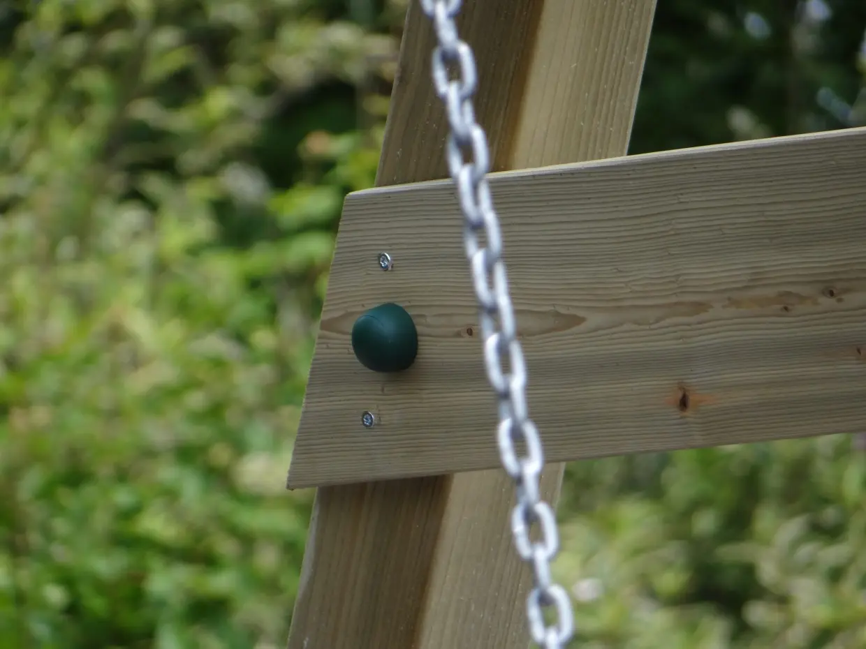 • De hoek tussen poten en ligger is 100º, waardoor alle poten iets uit elkaar staan en de schommel uiterst stabiel wordt