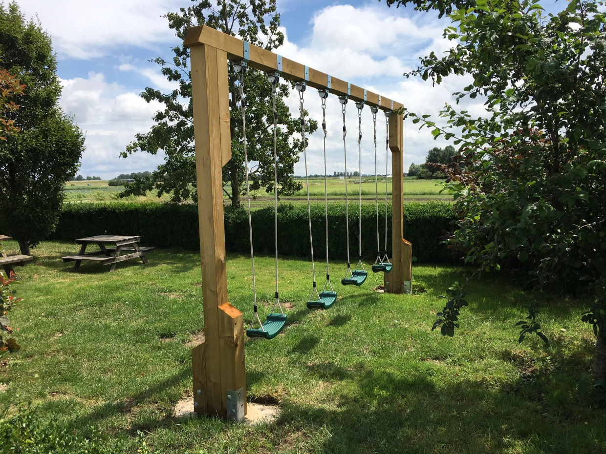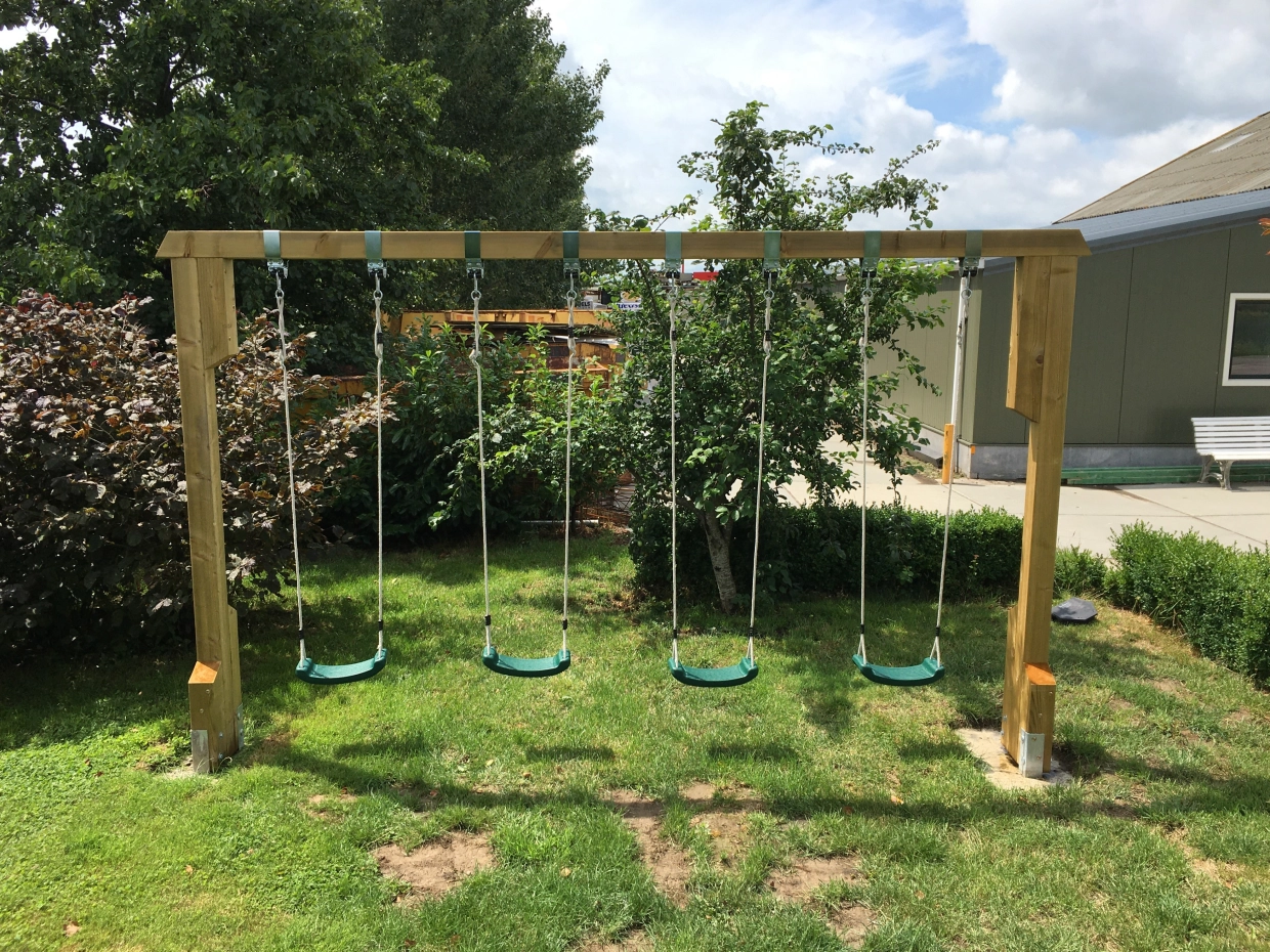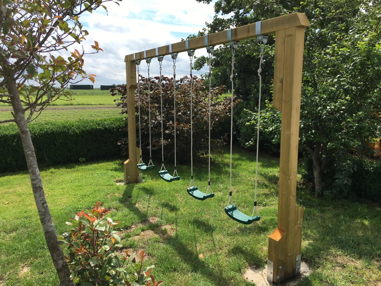 Familieschommel Switch 400 is een mega grote schommel voor 4 personen. De schommel kan voorzien worden van 4 standaard schommelzitjes. Het houten frame wordt vastgezet met stalen ankers in beton. Dit geeft veel stabiliteit. De speelse, schuine kanten en verspringende lengtes geven een speels effect. De stoere familieschommel is gemaakt van geïmpregneerd Noord-Europees vurenhout 12x12cm. Schommelen maar!