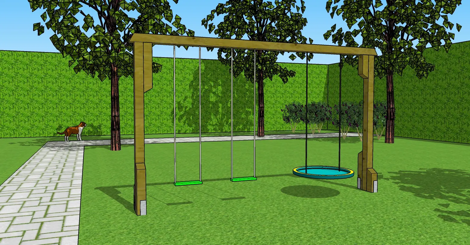 - Schommel met staanders en ligger van 12x12cm