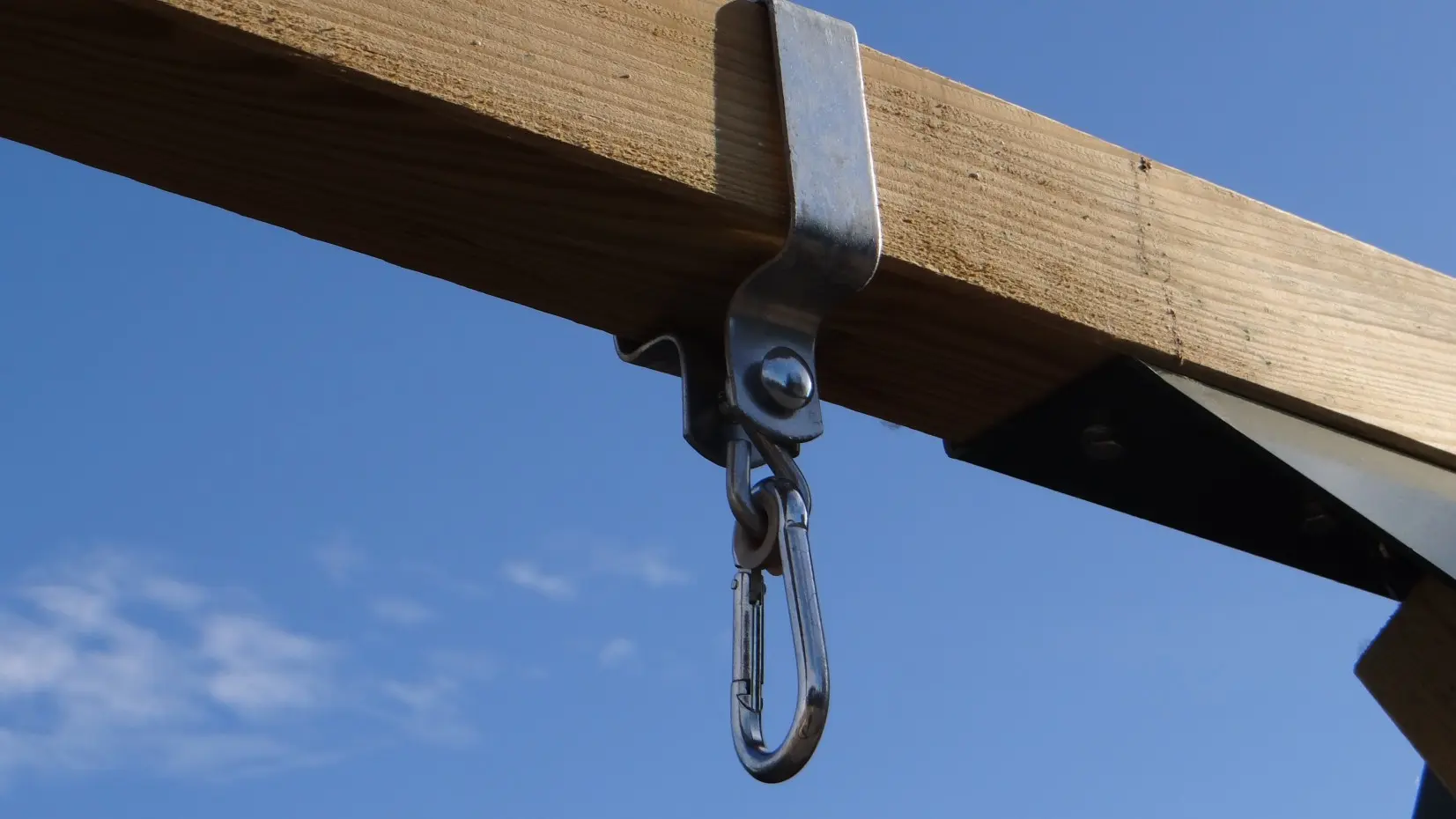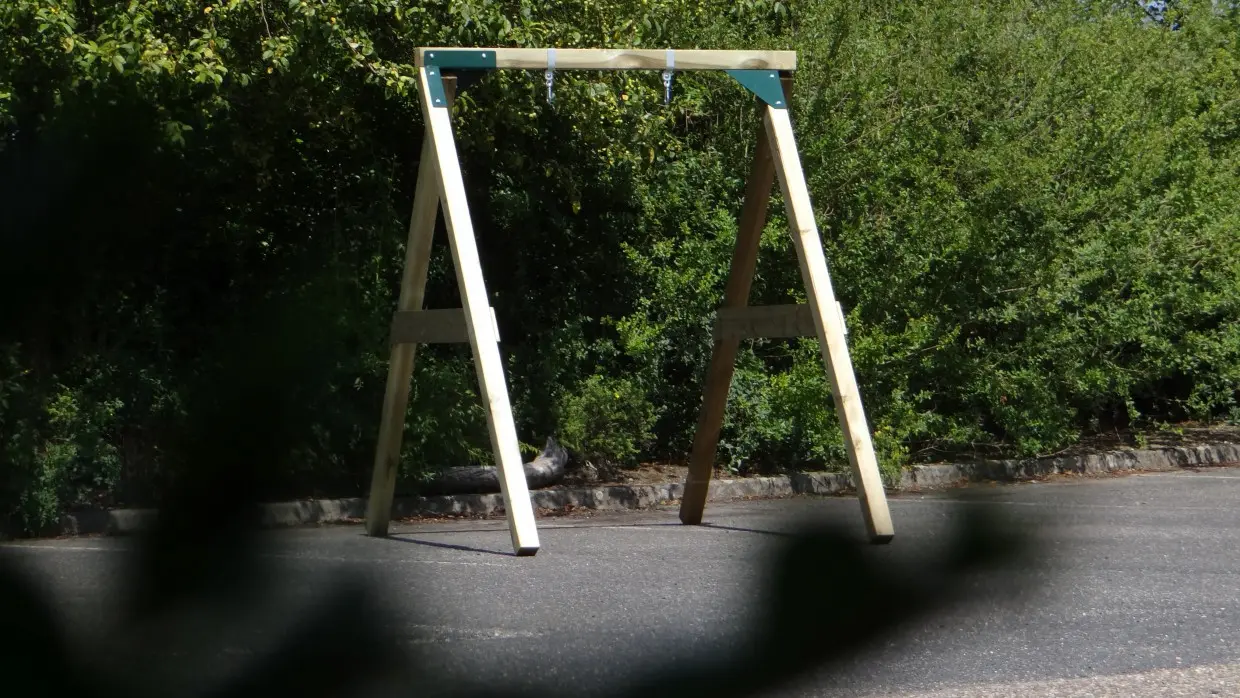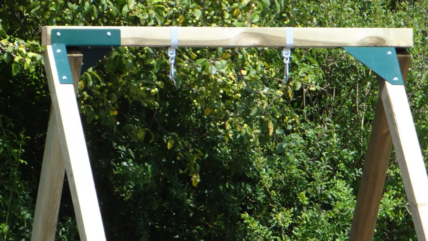 • De hoek tussen benen en ligger is haaks, waardoor de schommel weinig ruimte in beslag neemt en toch stevig is