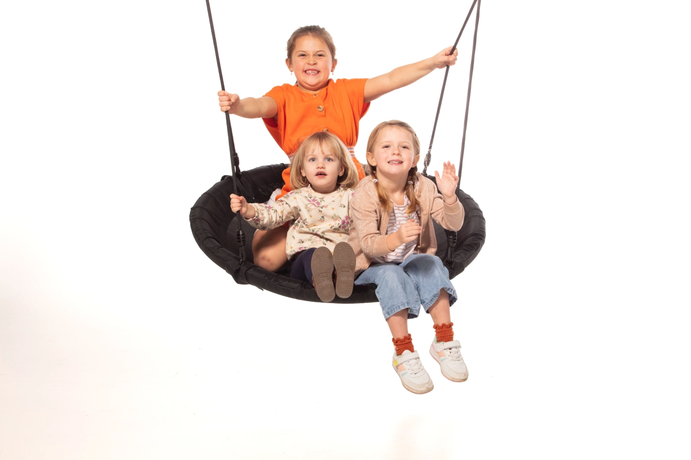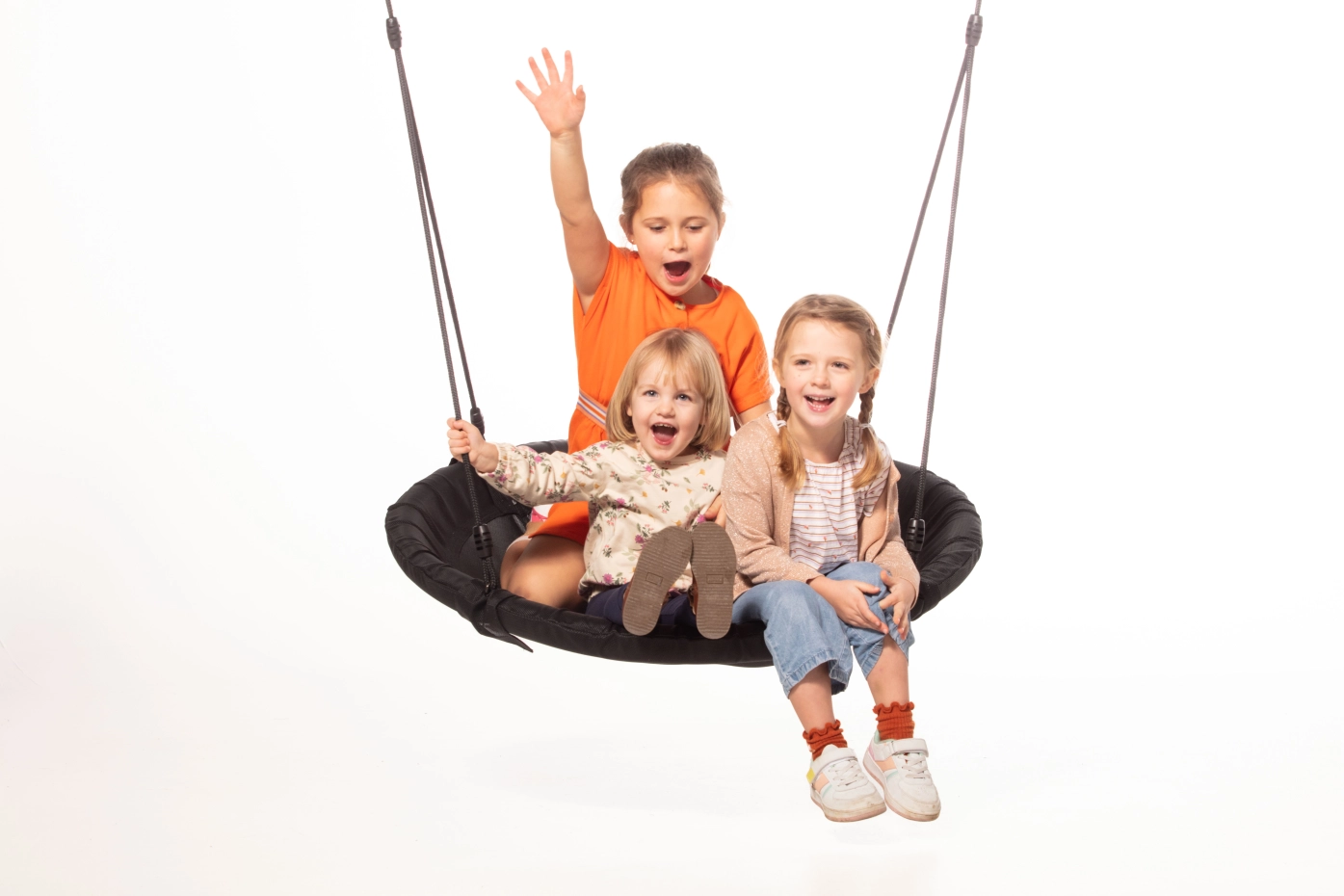 Nestschommel Rondice zwart is een prachtige, ronde nestschommel voor extra groot plezier! Deze nestschommel is gemaakt van een waterafstotende stof, met zwart gevlochten touw met zwart BR-kunststof lassen. Een solide nestschommel waar meerdere kinderen tegelijk op kunnen schommelen.