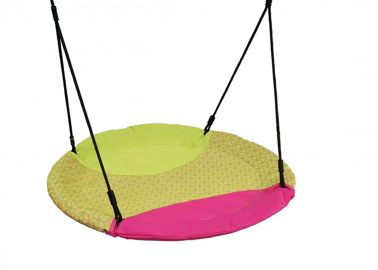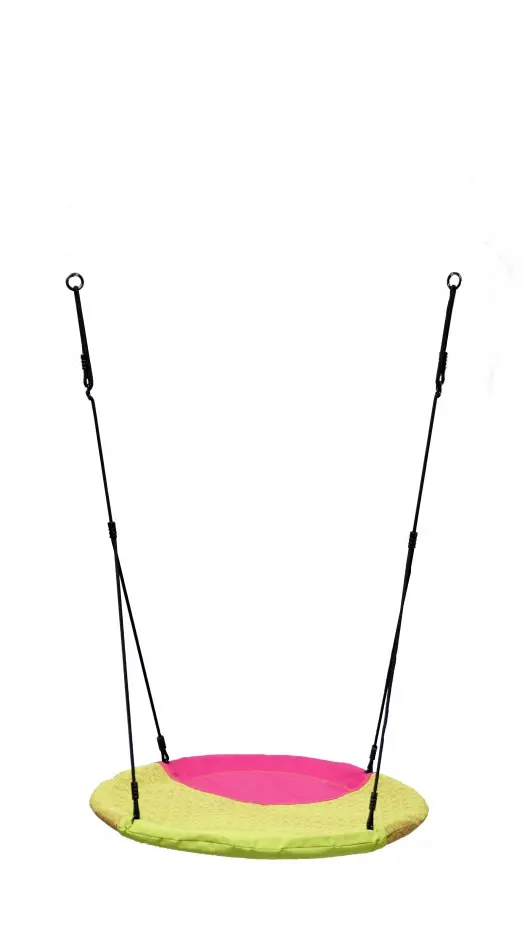 Nestschommel Winkoh magenta/limoengroen is een ronde nestschommel die zorgt voor veel speel plezier! Op deze solide nestschommel kunnen meerdere kinderen tegelijk schommelen, zwieren en spelen. Nestschommel Winkoh heeft een waterafstotende stof. De schommelmand is voorzien van zwarte BR-touwen, welke zeer kindvriendelijk zijn.