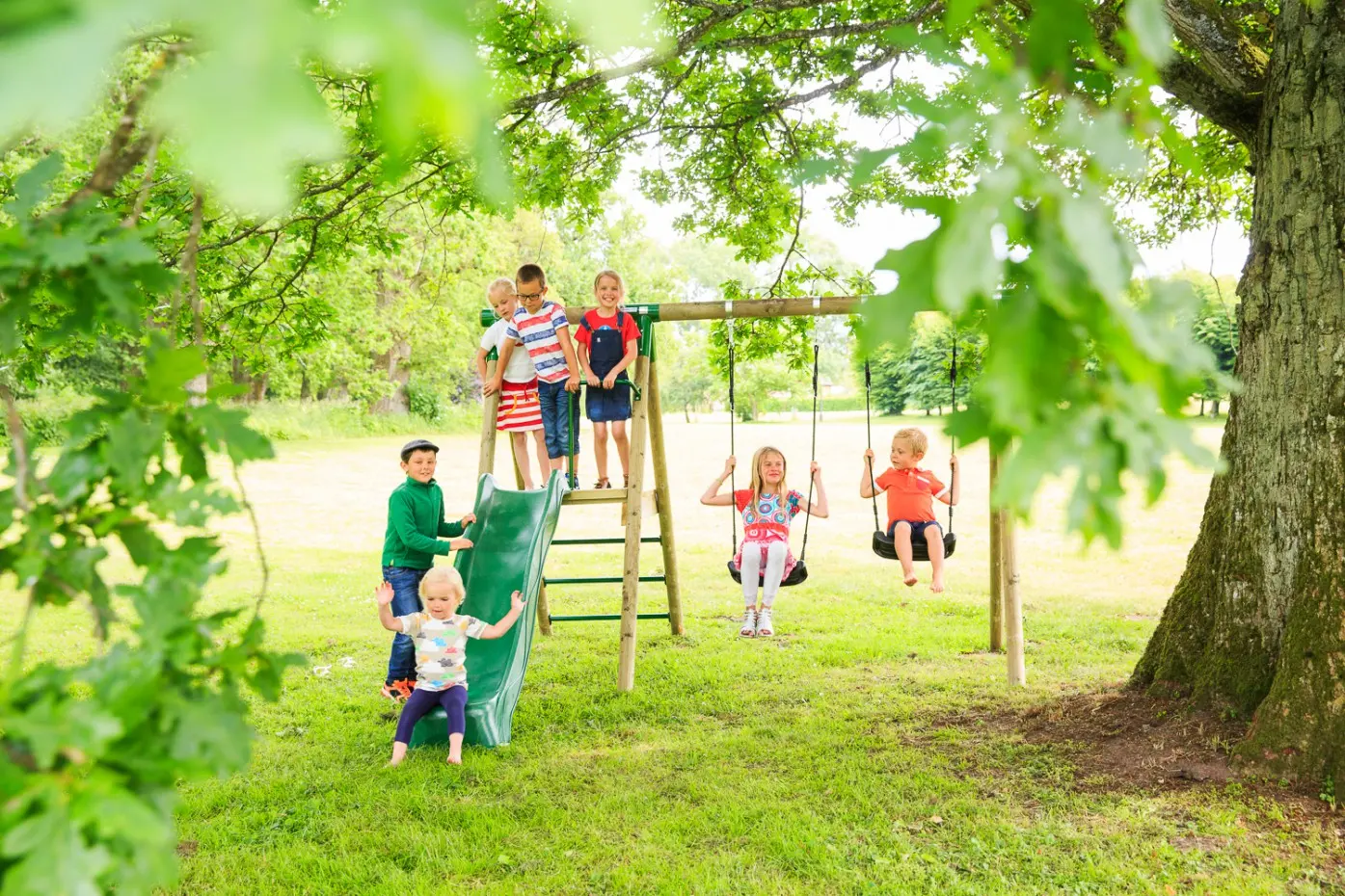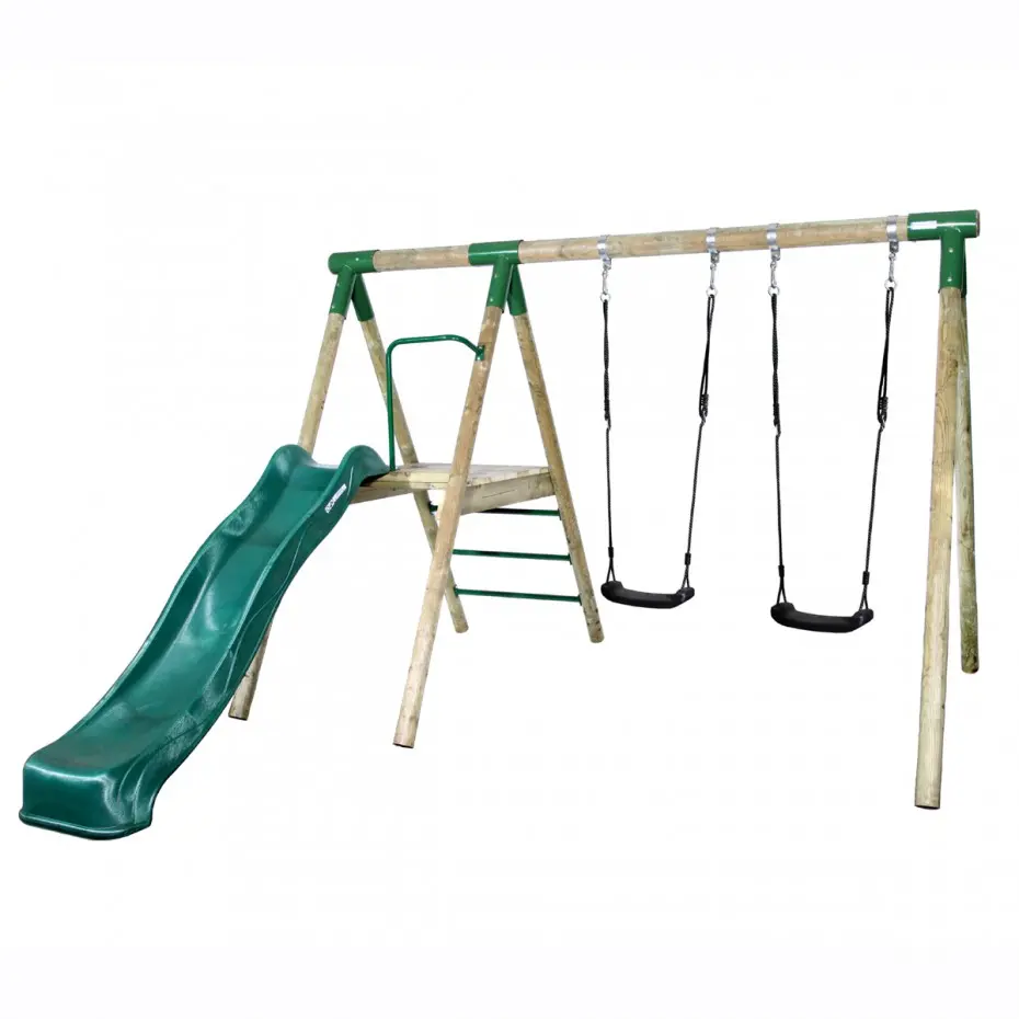 Houten schommel Actief met glijbaan