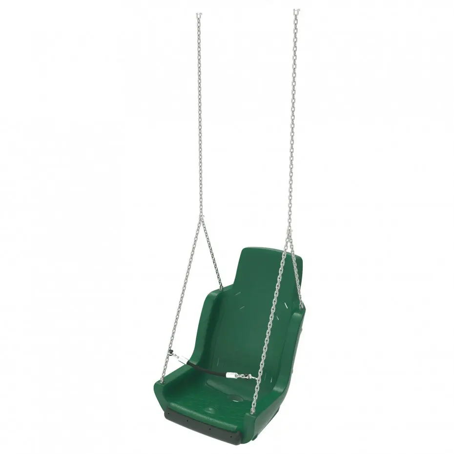 De KBT gehandicaptenschommel voor kinderen met beperking 'kettingset'. De schommel voor kinderen met een beperking is gemaakt van rotatie gegoten HDPE en speciaal gemaakt voor kinderen met een beperking. De zitting is ook voorzien van een schokabsorberende bumper (EPDM rubber). De stoel is verkrijgbaar in verschillende kleuren: rood, groen, limoengroen, blauw en antraciet. De kuipschommel met het kettingset heeft een RVS-veiligheidsketting. De veiligheid barrière is gemaakt van gewapend touw, wat zorgt voor een extra veiligheidsgevoel bij het kind.