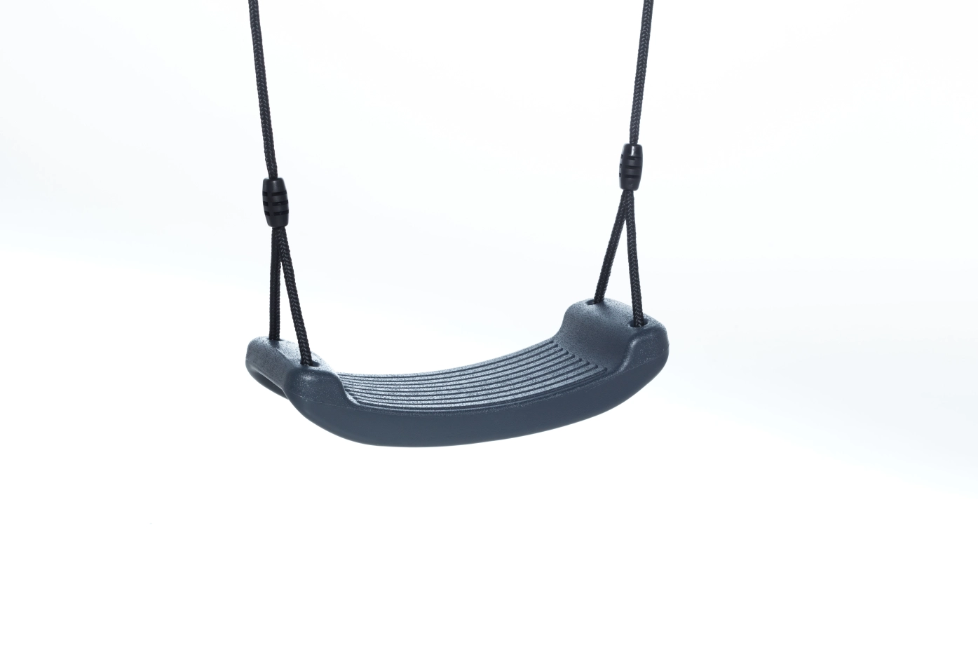 Leuk schommelzitje voor kinderen. De totale oppervlakte van het schommelzitje is 42x17cm. Dit antraciet kunststof schommelzitje is voorzien van zwart gevlochten touw. Aan de uiteinde van het touw zit een ophangring om het schommelzitje gemakkelijk op te kunnen hangen.