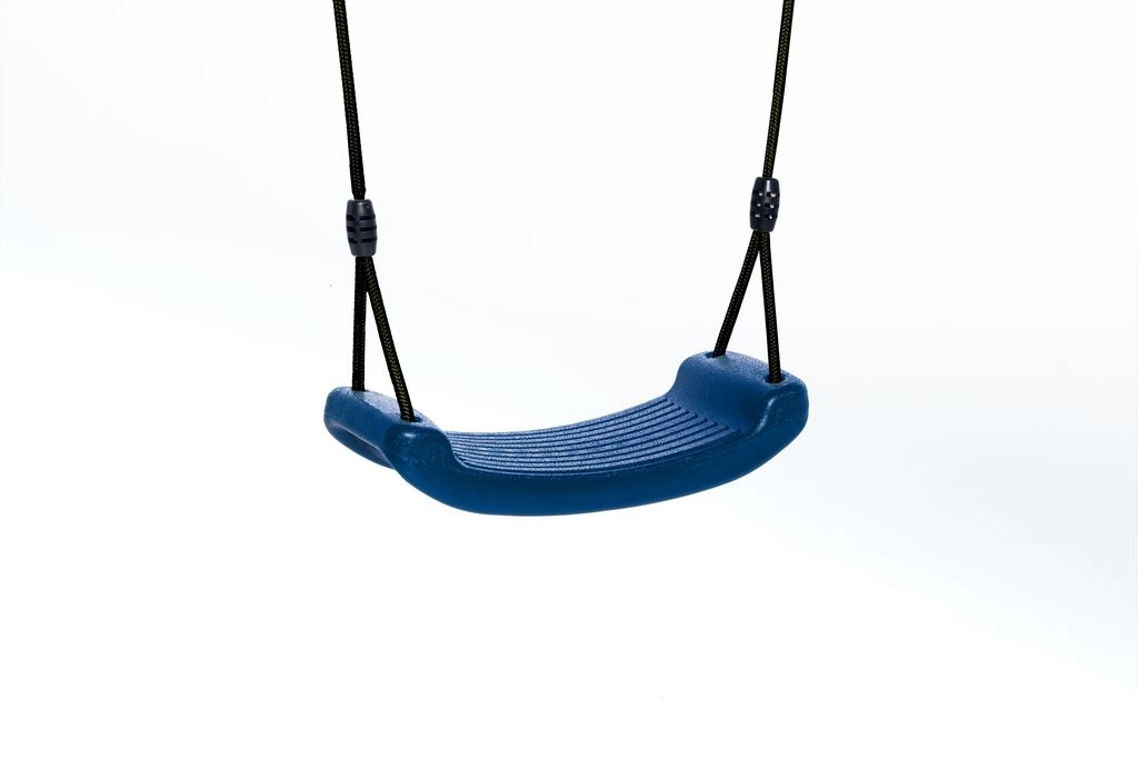Schommelzitje van kunststof in de kleur blauw. Een stevige schommel, speciaal voor kinderen. De afmeting is 42x17x8,5cm. Dit kunststof schommelzitje is voorzien van zwart BR-touw. Ringen en stelachten van gegalvaniseerd staal.