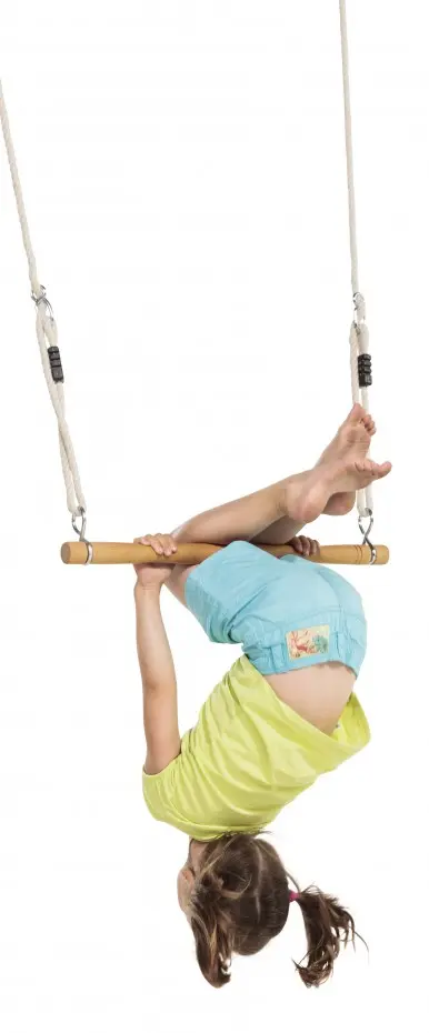Leef je acrobatische kunsten helemaal uit met deze ergonomisch gevormde trapeze! Houten trapeze model Ergonomic, voorzien van kindvriendelijk PH-touw. De trapeze is geschikt voor een schommelbalk van ongeveer 2,5 meter hoog. De touwen kunnen worden afgesteld tussen 770 mm en 1170 mm lang, afhankelijk van de gewenste hoogte van de trapeze.