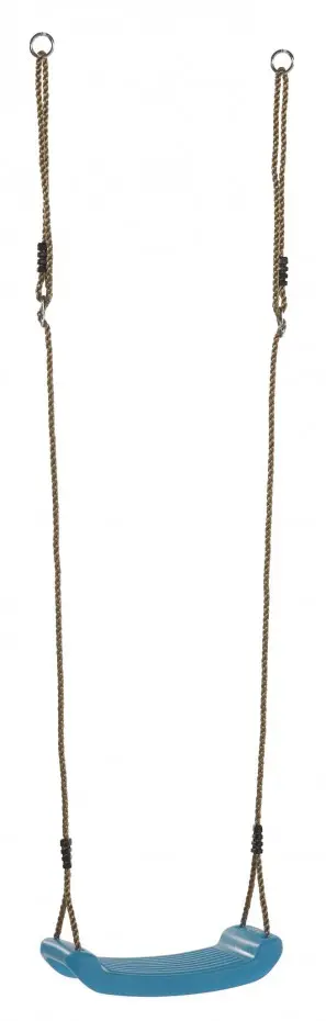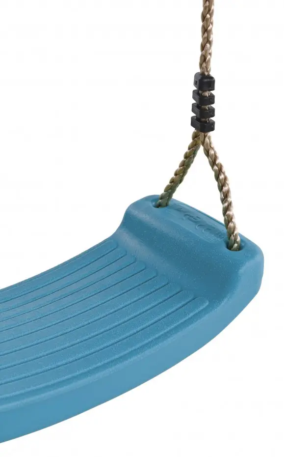 Kunststof schommelzitje in de mooie kleur turquoise, oftewel appelblauwzeegroen. Het schommelzitje heeft 10mm dikke PP-touwen met ophangogen. Het zitje is gemaakt van geblazen kunststof en heeft een maximaal belastbaar gewicht van 70kg.