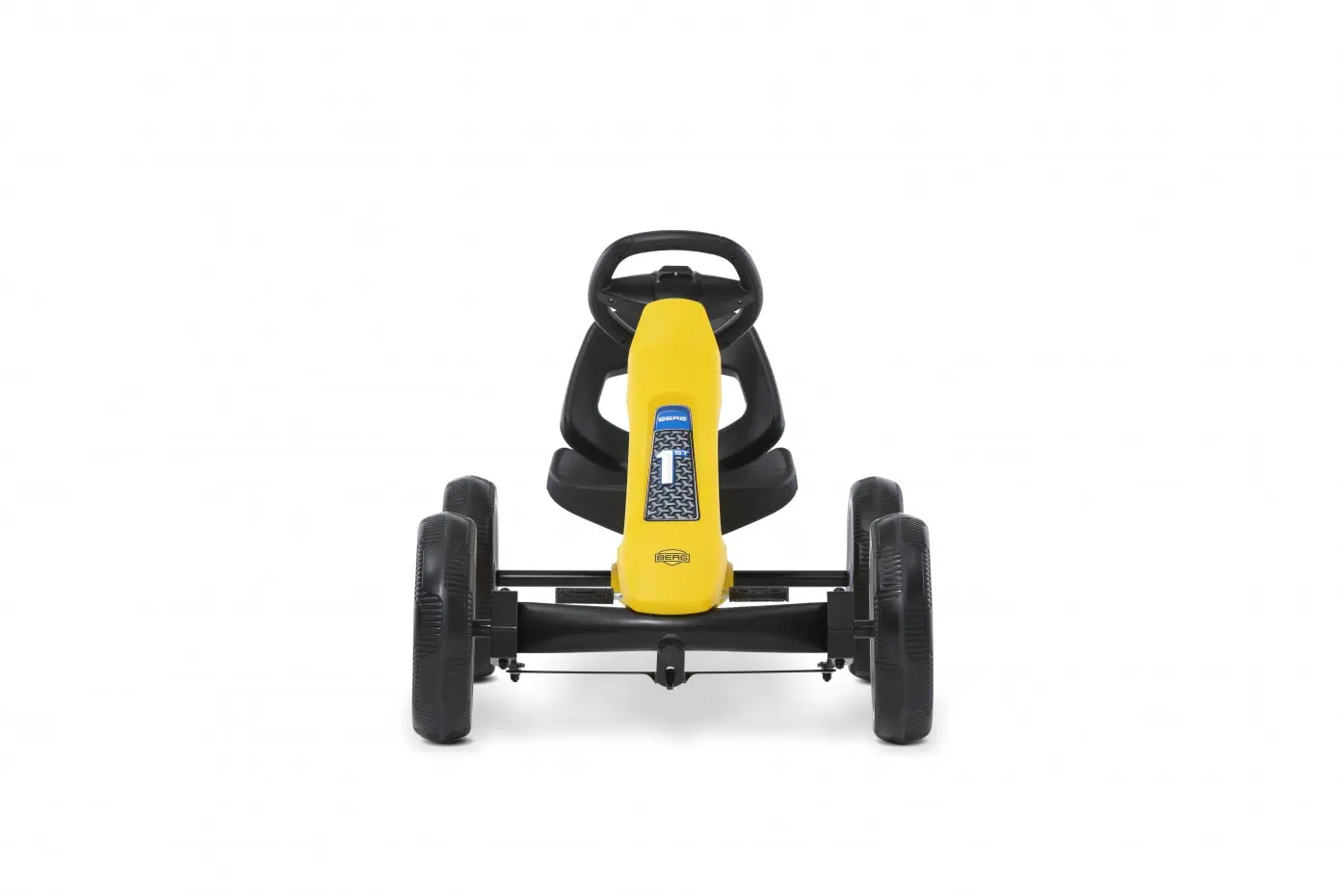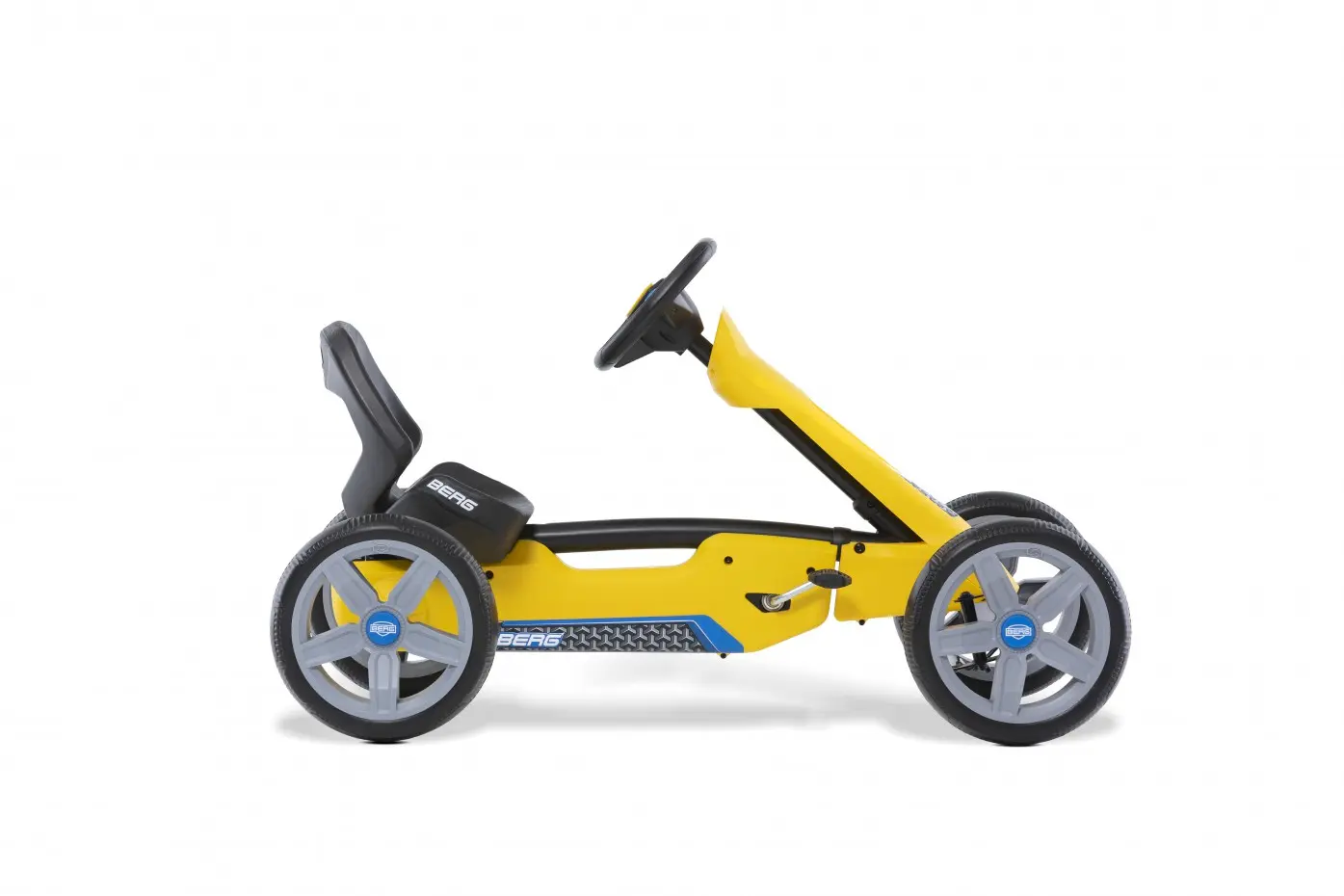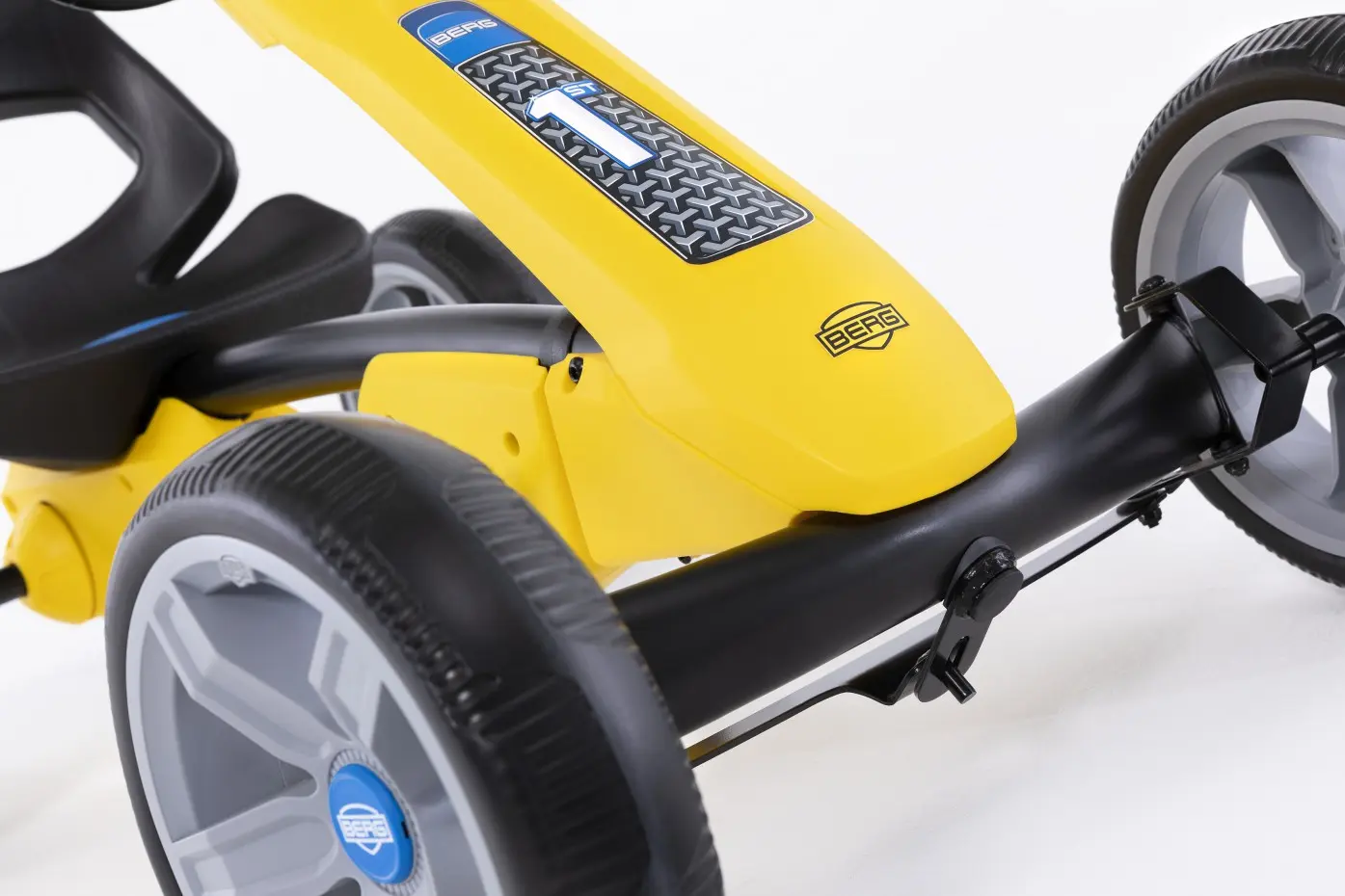 Door het aantrekkelijke en sportieve design van de Reppy Rider, wil elk kind de buurt hier wel op ontdekken. Het opvallende sportstuur, de nooit lek rakende EVA 10'' inch banden, de stoere kuipstoel en de schommel-as maken skelterrijden ongekend leuk. De BERG Reppy is door de lage kuipstoel de eerste skelter voor jonge kinderen met échte, lage skelterinstap.