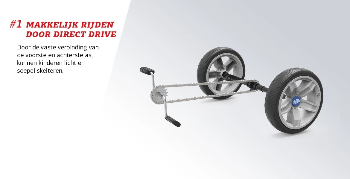 - Kan vooruit én achteruit én remmen door de Direct-Drive naaf