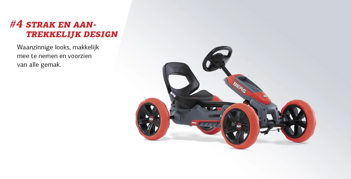 De samenwerking tussen BMW en BERG bereikt een nieuw hoogtepunt met de komst van de BERG Reppy BMW. De herkenbare grill, koplampen en spoiler maken deze skelter tot de meest begeerlijke Reppy. De grote velgen met EVA banden zorgen voor grip en comfort. Door de lagers en direct drive trapt de Reppy super licht en in combinatie met de lage zit is de rijervaring daardoor, zoals het hoort in een BMW, ongekend. De soundbox maakt de beleving compleet. Ook aan de praktische kant is gedacht. Zo is de stoel is makkelijk verstelbaar, zijn de banden stil en kunnen ze niet lek raken. Bovendien is de Reppy makkelijk tilbaar door het handvat in het frame. BMW maakt rijden geweldig en met de Reppy BMW geldt dat nu ook voor kinderen.