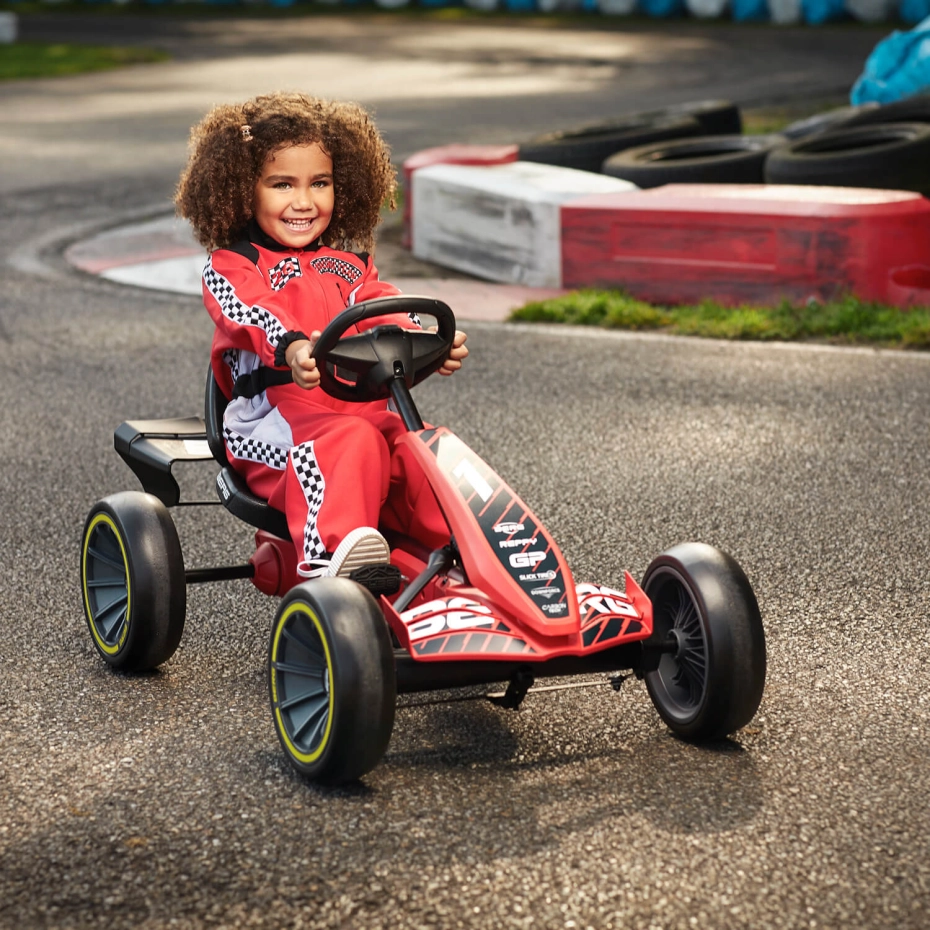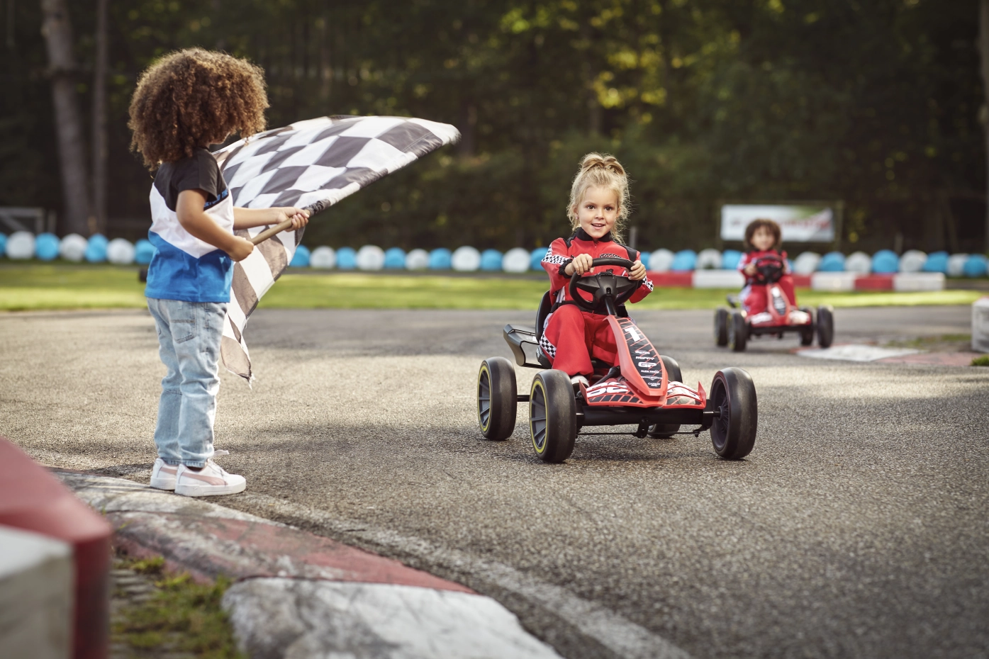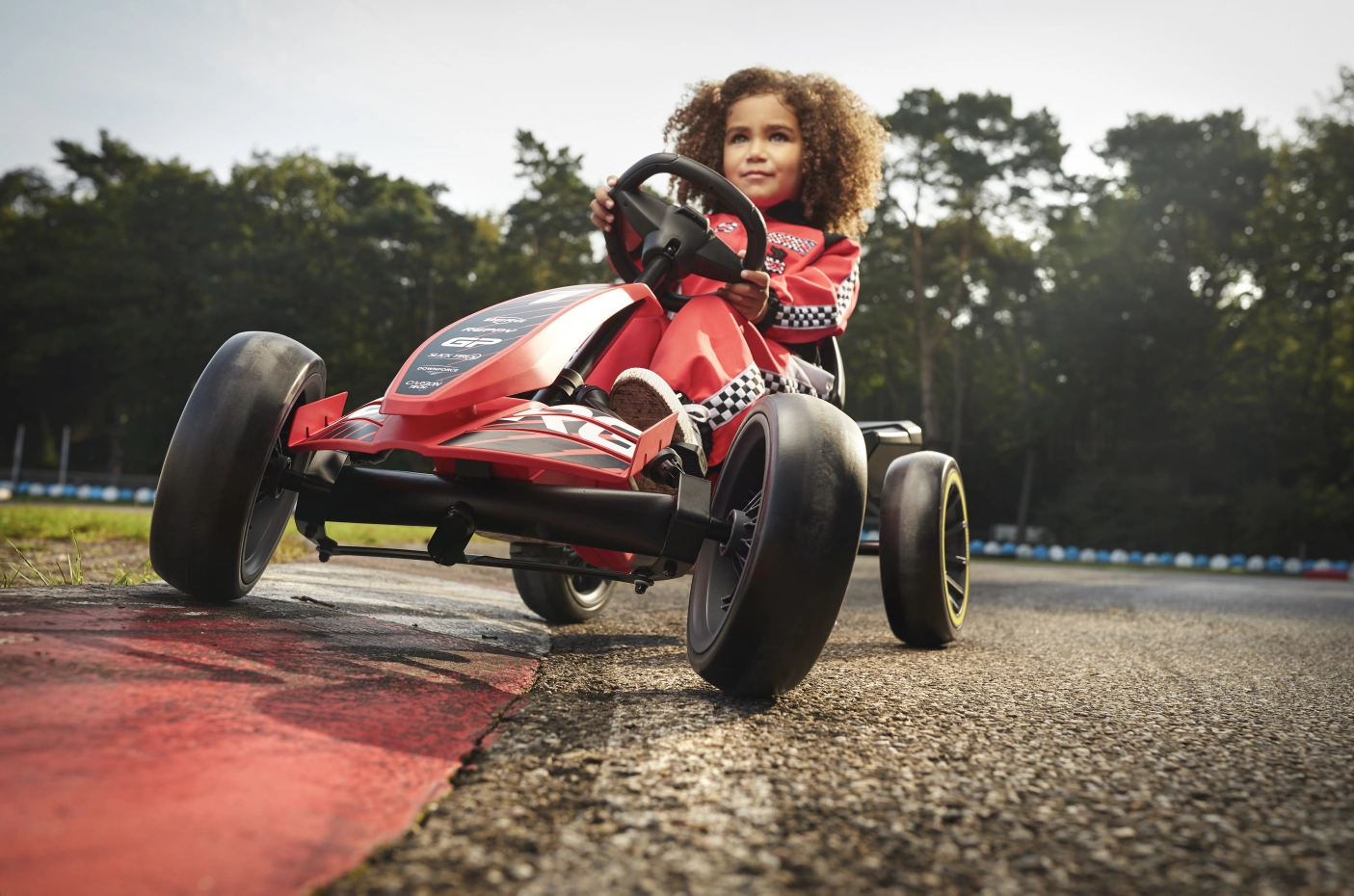 De lage zit van Berg skelter Reppy GP, de stoere kuipstoel, de voorspoiler en de racebanden maken van deze Reppy een echte racer! Het sportstuur van deze skelter is standaard uitgerust met een échte soundbox. De soundbox heeft 4 verschillende tonen: remmen, toeteren, de motor starten en gas geven. Berg skelter Reppy GP heeft 4 nooit lek rakende EVA 10’’ inch banden, een verstelbare kuipstoel en een schommel-as.