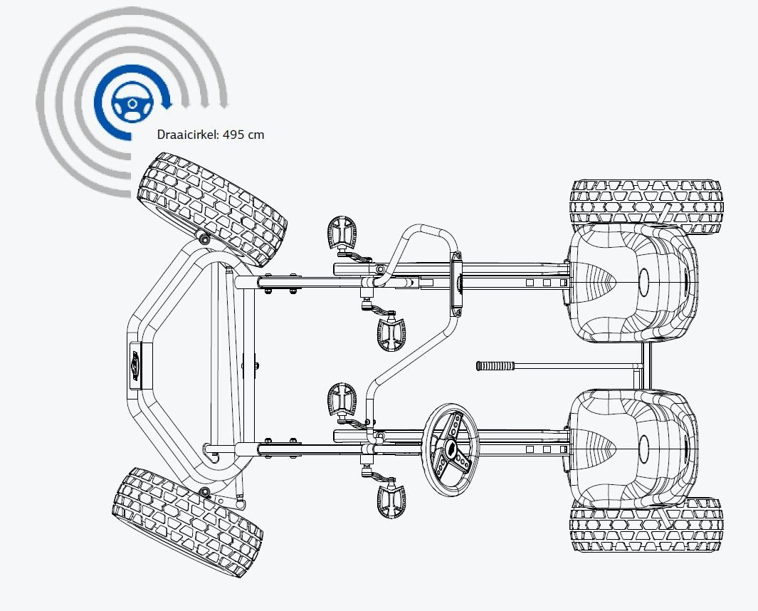 De Duo Coaster is gebaseerd op het XXL frame waardoor deze ook geschikt is voor extra lange personen. De Duo Coaster is daarnaast uitgerust met een schommel-as waardoor de wegligging optimaal is en de 4 wielen altijd aan de grond blijven. Bij de montage kan er gekozen worden om het stuur aan de linker- of rechterzijde te monteren. Dit maakt de skelter internationaal inzetbaar.