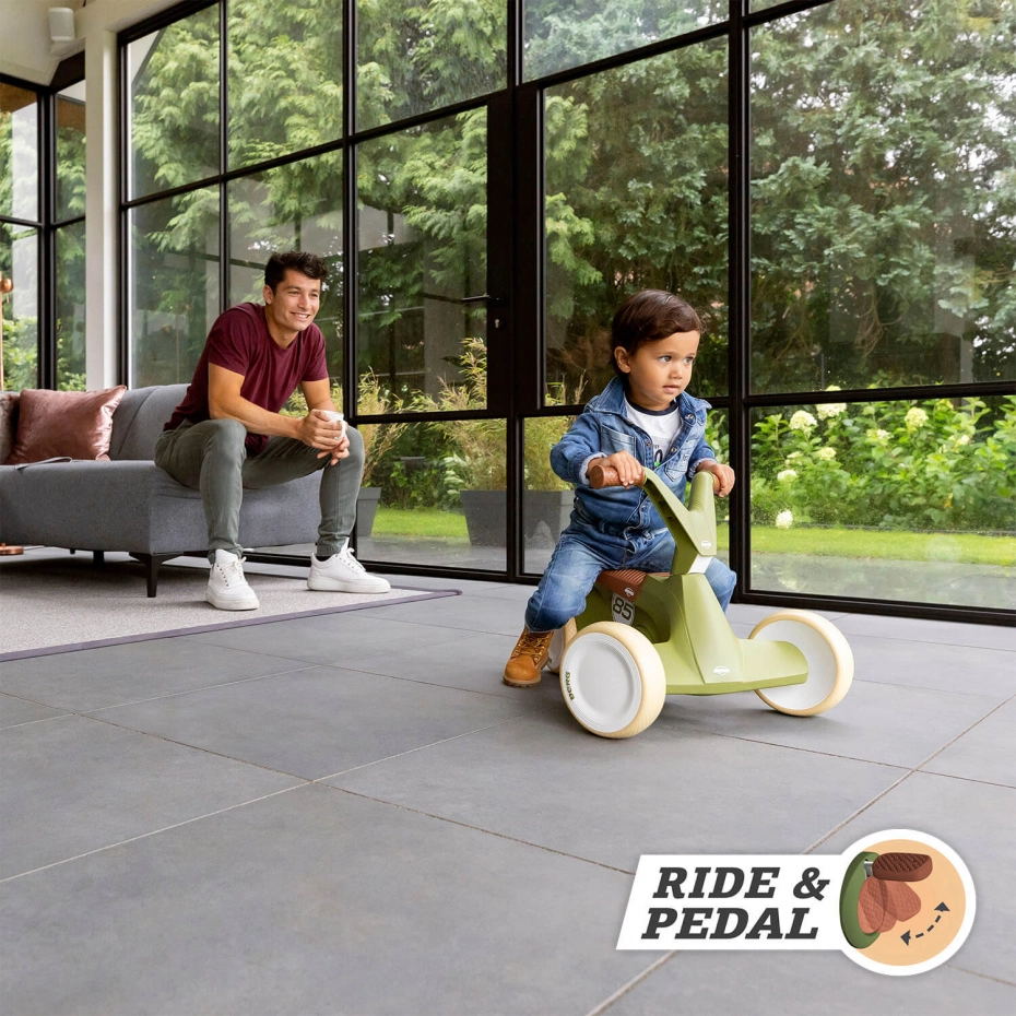 - Dankzij het ergonomische design komen de voetjes van je dreumes niet tegen de pedalen of achterwielen aan