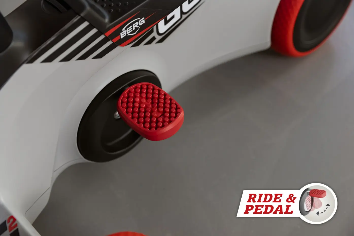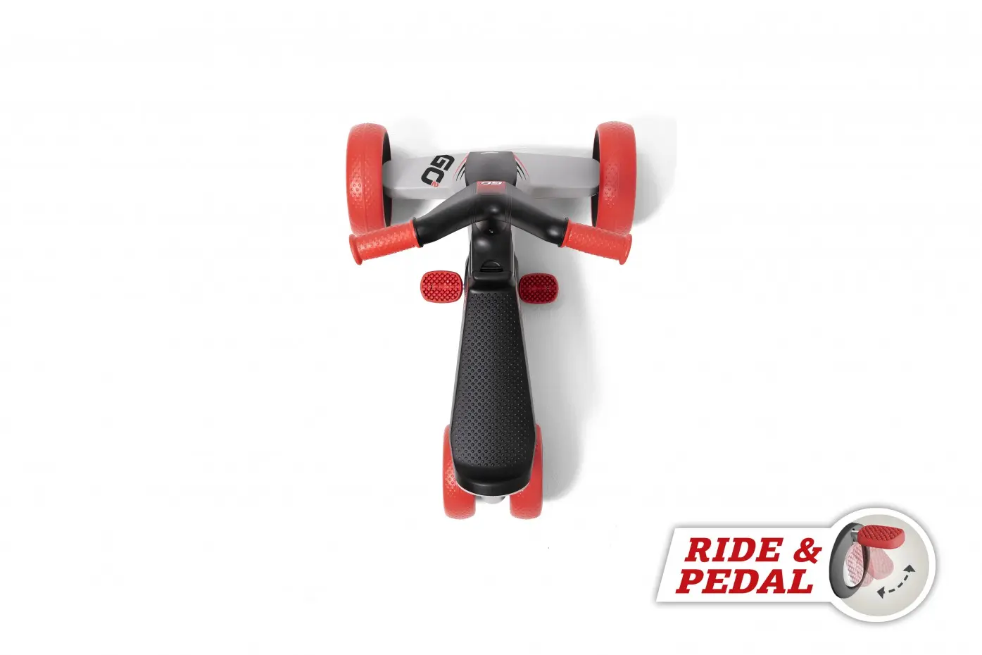 De BERG GO² is de kleinste skelter, geschikt voor kinderen van 10-30 maanden. Maar onderschat deze dreumes van een skelter niet. Op deze skelter leert je kleintje namelijk sneller steppen en trappen! Kortom 2 in 1. Eerst kun je de trappers ingeklapt houden zodat je kindje kan steppen. Door de vormgeving kan je kindje de BERG GO² eenvoudig als loopauto gebruiken zonder dat de pedalen of achterwielen in de weg zitten. Wanneer je kind toe is aan de volgende fase, klap je de trappers uit. Dan kan jouw dreumes heerlijk leren rondrijden op de BERG GO². Je hoeft niet bang te zijn dat je kindje omvalt, want de BERG GO² staat stevig op de grond door de vier wielen. Dit is wel zo veilig!