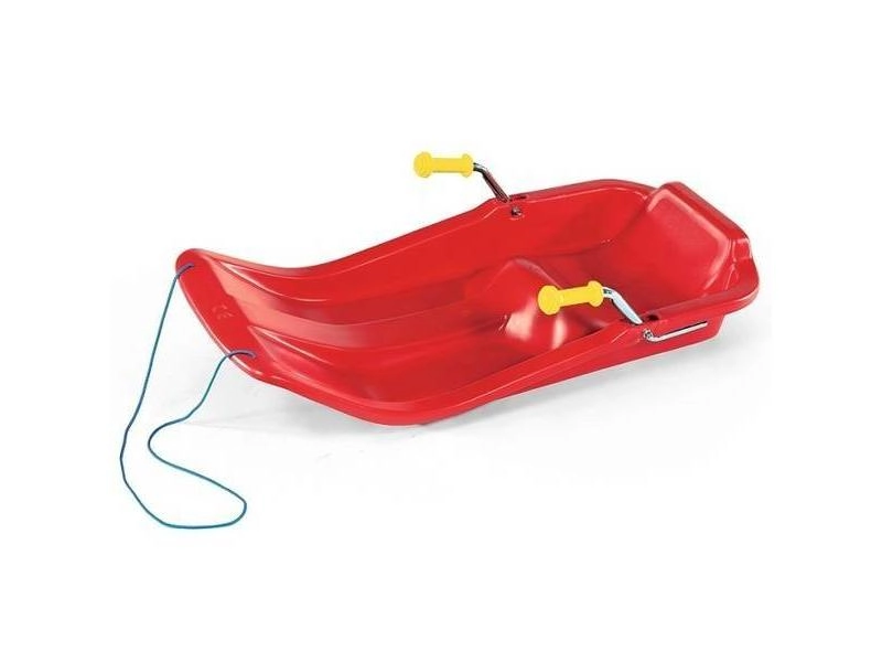 Kunststof Rolly Toys slee. Een klassieke slee, draagbaar, gemakkelijk en duurzaam in gebruik. De slee is voorzien van een rem en wordt geleverd met een trekkoord. Kleur kunststof slede: rood.