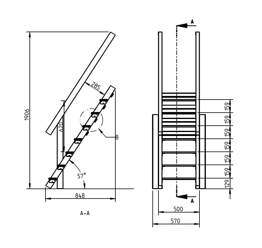 Trap met 7 treden en 2 leuningen - @Steps 120