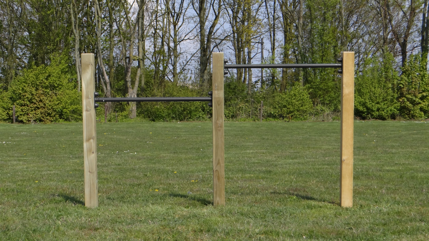 Duikelrek voor 2 personen! Duikelrek met 2 duikelstangen van 90cm lang en 3 houten palen van 2,4 meter. Dubbel duikelrek voor dubbel speelplezier!