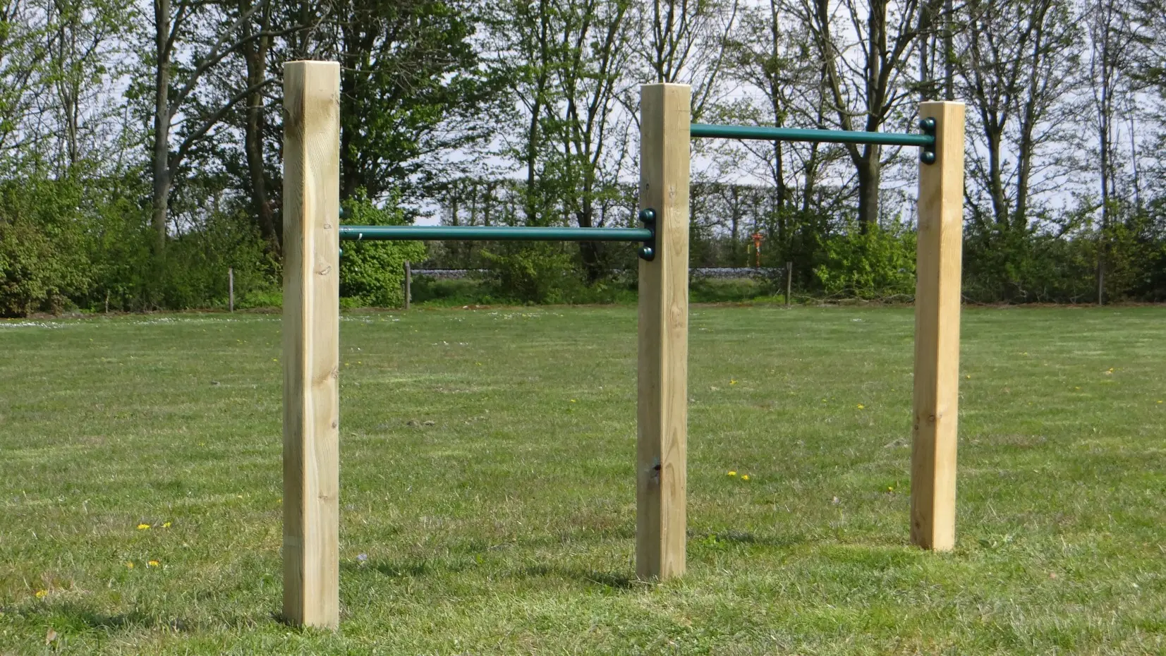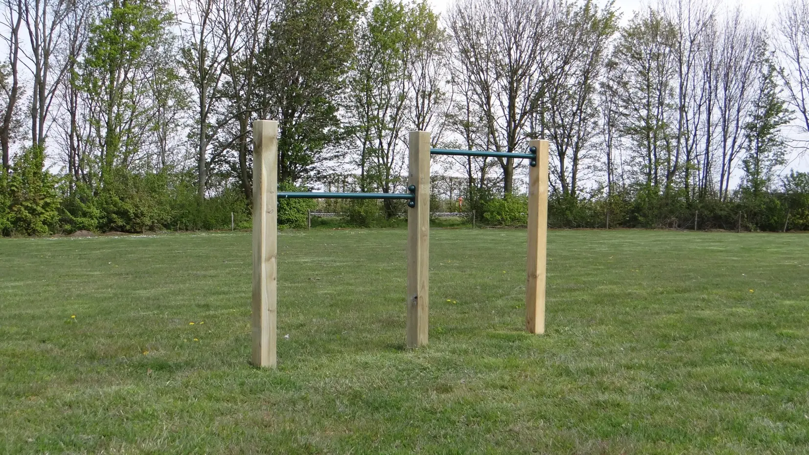 Duikelrek voor 2 personen! Duikelrek met 2 duikelstangen van 90cm lang en 3 houten palen. Dubbel duikelrek voor dubbel speelplezier!