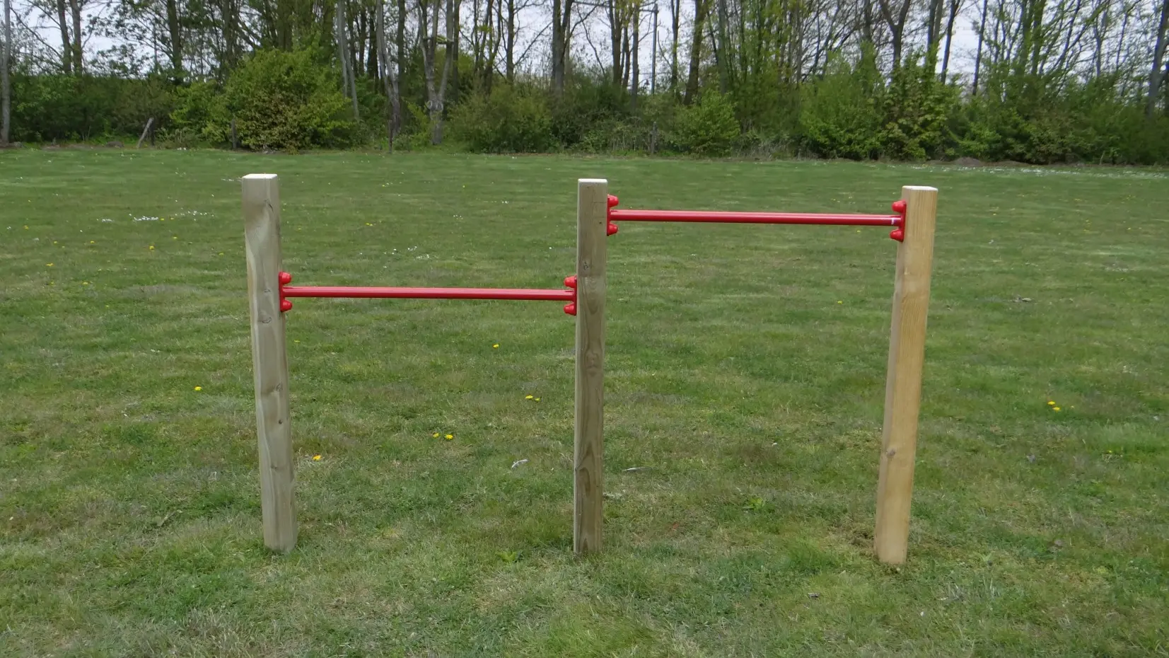 Dubbel duikelrek met 2 rood gepoedercoate duikelstangen. De ene duikelstang is 90cm en de andere is 125cm. Ook worden er 3 houten palen meegeleverd met dit duikelrek. Zo'n dubbel duikelrek is mooi en gewaardeerd buitenspeelgoed voor meerdere kinderen tegelijk. Een duikelrek wordt gratis door ons verzonden.