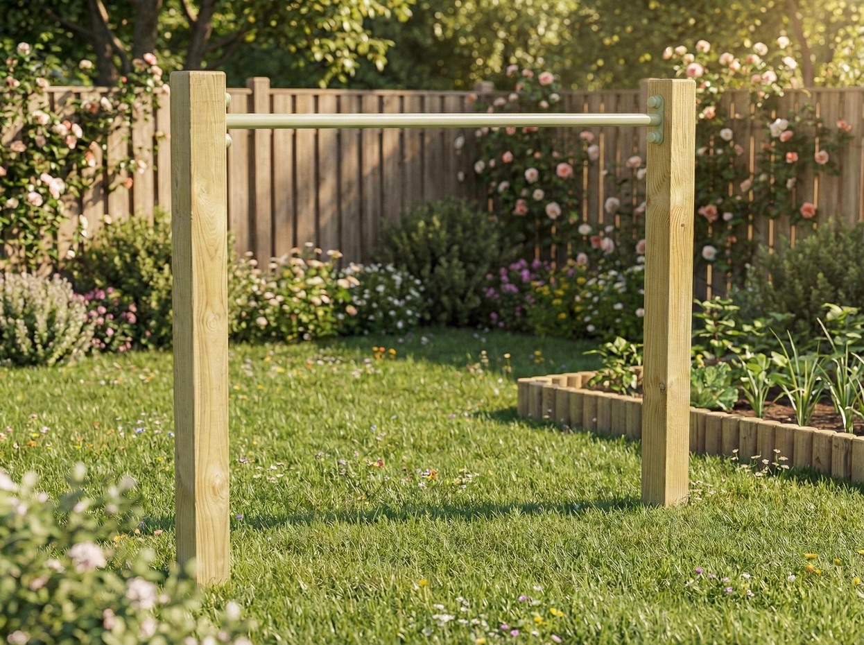 Duikelrek met stalen duikelstang van 125cm. Dit duikelrek is een prachtige speelattractie voor in uw eigen tuin. Het duikelrek heeft een pastelgroen gepoedercoate duikelstang van staal en twee geïmpregneerd houten palen van 2 meter lang. Een duikelrek neemt weinig ruimte in beslag en is daardoor al snel geschikt als buitenspeelgoed voor in de kleine tuin.
