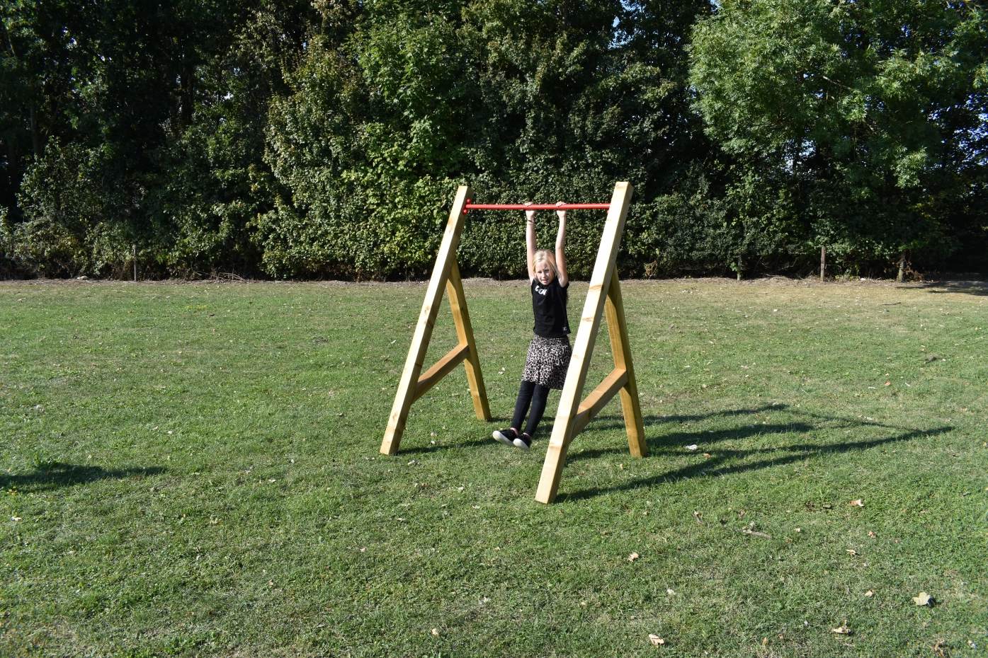 Houten duikelrek Sky is een stabiel en stevig turnrek voor buiten. De sterke, metalen rekstok heeft een breedte van 90cm en kan in diverse kleuren geleverd worden. De rekstok van dit turnrek Sky kan tot een hoogte van ca. 170cm geplaatst kan worden. Om het duikelrek te verankeren wordt het geleverd incl. 4 spiraal grondankers.